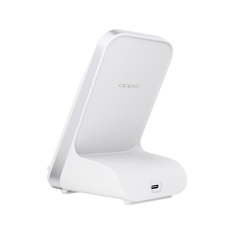 OPPO这款无线充电器采用近60度立体式设计,符合人体工学原理,提供舒适观看视角的同时,也有效提升放置稳固性。内置双线圈,有效扩大感应范围,同时搭载独立 MCU,与手机、适配器共同构建快充架构,30分钟,可为 Find X3 系列充电45%,给 Ace2 充电55%,横放,竖放,都能闪充。