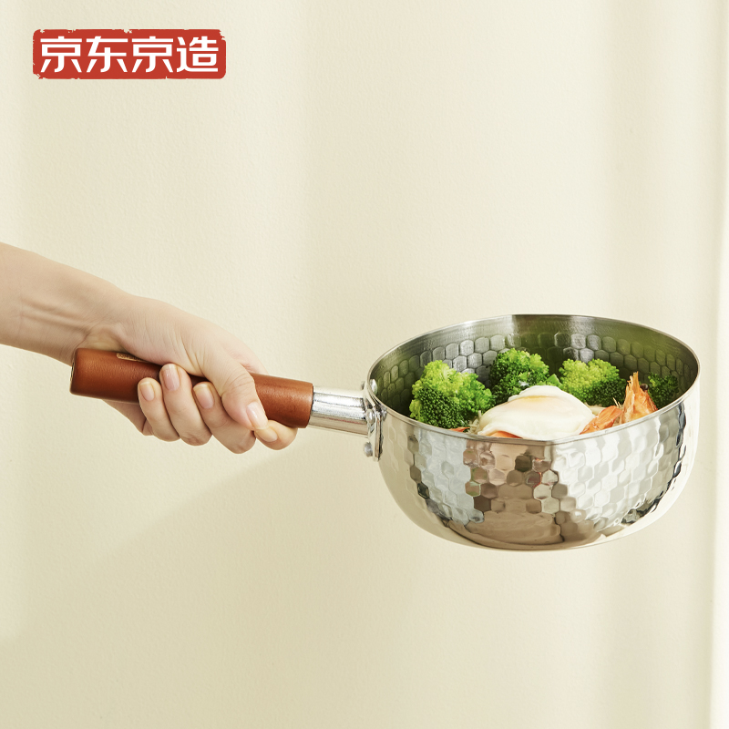 京东京造日式雪平锅,快速加热,一锅多用,不粘易洗,采选优质铝合金材质,加热迅速,热量在锅体中快速传导,受热均匀,节省烹饪时间,手工锻造锤目纹,精致不溢锅,麦饭石不粘工艺,健康不粘锅,加厚复合锅底,坚固耐用。规格:18cm。