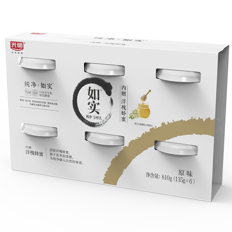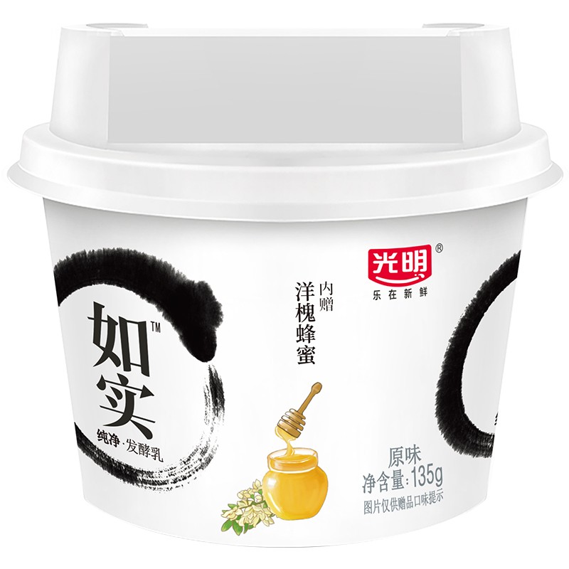 Bright光明如实酸奶,采用新鲜牛奶和优质乳酸菌发酵而成,不添加添加剂、增稠剂、白糖、香精等,纯净无添加,还原酸奶本来的样子。随包赠送蜂蜜,味道更好。乳含量≥99%,蛋白质含量4.2g/100g,脂肪含量。规格135g*3杯。