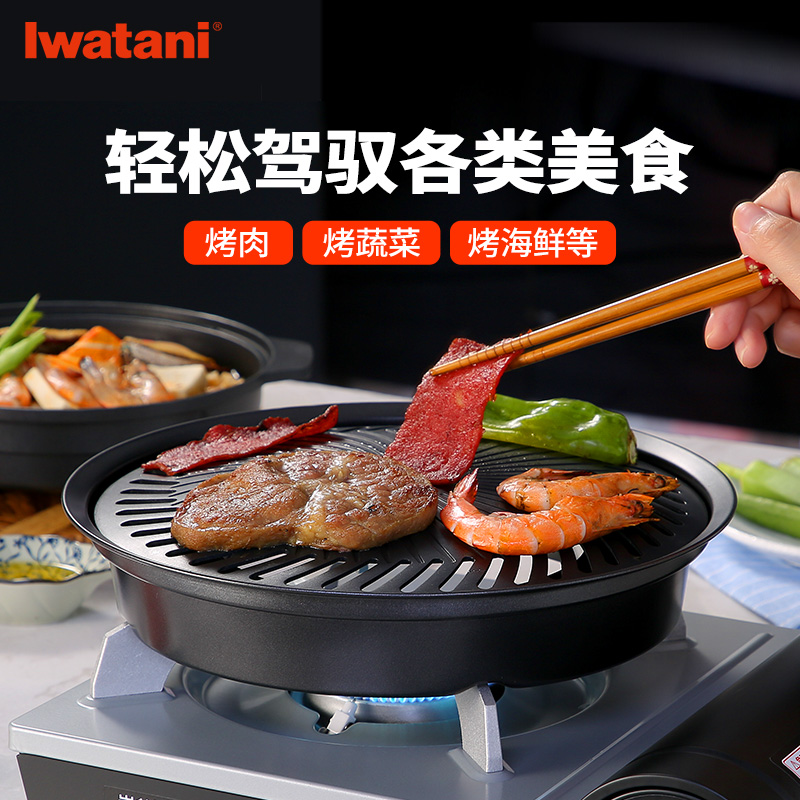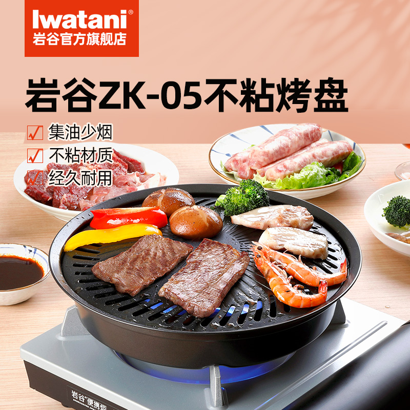 Iwatani 岩谷 ZK-05 户外卡式炉烧烤盘,烤盘表面涂油安全的聚四氯乙烯涂层,使得烤盘不易产生油烟,易清洗,不留油纹路设计,不沾锅。