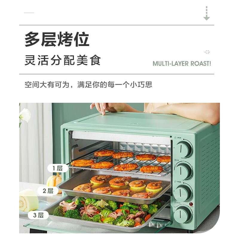 容量大:40L大容量,烤披萨、蛋挞、红薯、蛋糕样样精通。易操控:四旋钮上下管独立控温,操控真的简单。功能全:一台等于发酵箱、果干、烧烤、吐司机、多层烤位灵活方便。材质好:耐用钻石内胆耐高温易清洁。寿命长:整机一年,主要部件保修两年保修,正常使用长达8年以上。