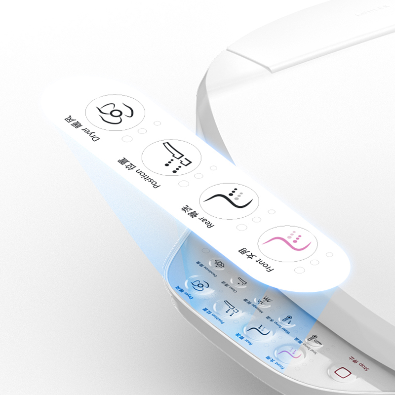 此款马桶盖采用恒动续热系统,可提供持续热水,让冲洗更畅快,满足多人连续使用需求,法弧座圈的人体工学设计,坐感更舒适~添加无机系抗菌材料的盖板和座围具有长期抗菌效果,可有效抑制产品表面的细菌增长。不锈钢喷管,表面光滑洁净,不易沽染污渍。具有座圈加热(温度五档可调)、水温调节(水温五档可调)、暖风吹拂(风温五档可调)、位置可调(位置五档可调)、除臭功能。大尺寸键盘设计,使用更方便。温馨暖白智感夜灯,方便夜间使用,安睡不扰眠
