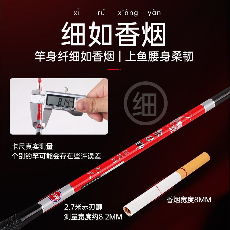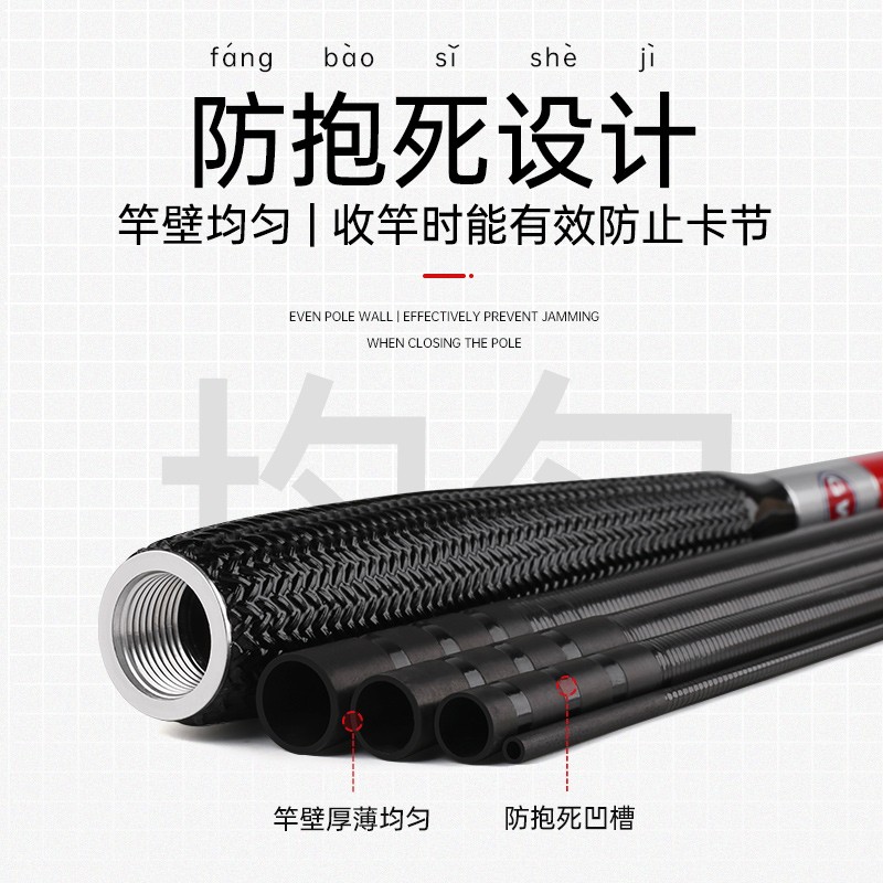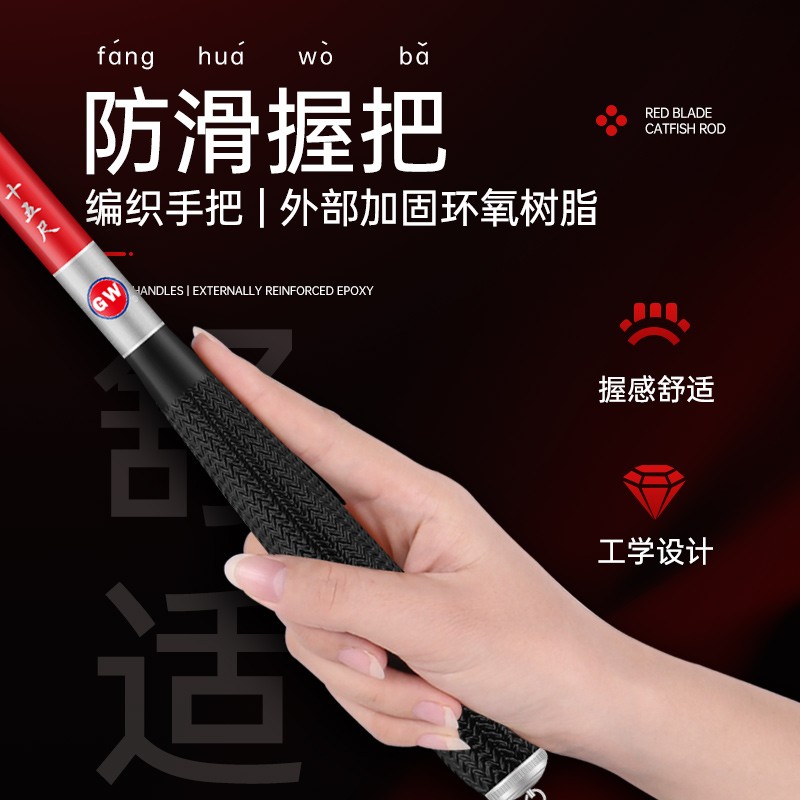 GW 光威 201912211629 鲫竿,内外多层高强碳纤逆丝加固,编织防滑握把,360°旋转竿稍预防缠绕不伤竿,防抱死设计,竿壁均匀收竿时能有效防止卡节。