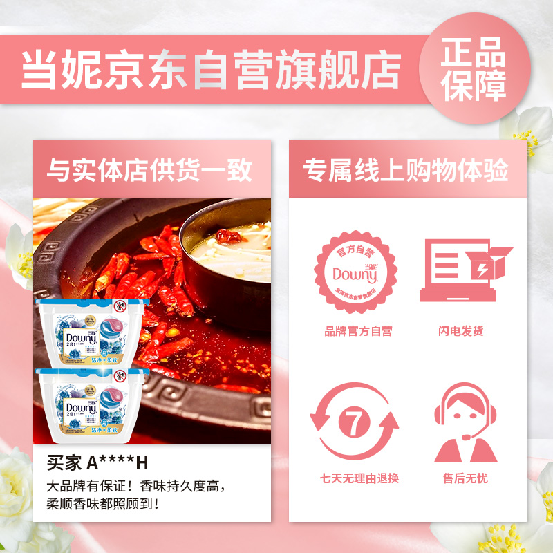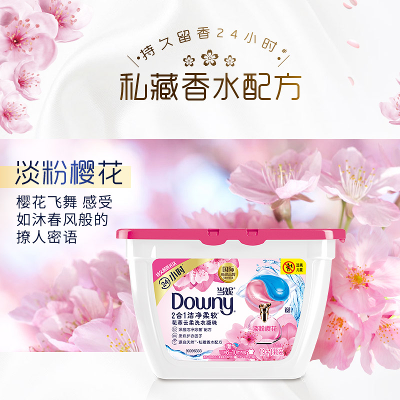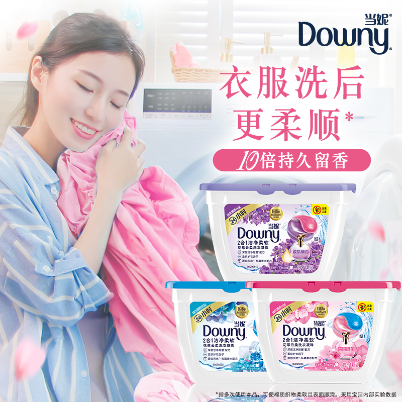 Downy 当妮成立于1961年,是宝洁公司(P&G)旗下的品牌之一, 成立起一直致力于为衣物洗涤带来更多新的提升与尝试。此款洗衣凝珠采用洁净+柔软 2合1配方,中性清洁成分,保证 2合1效果的结构稳定,有效发挥清洁和柔软双功效。