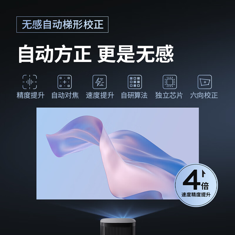 极米迄今为止亮度画质达新高度的H系列产品,拥有自研光机SUPER全色LED系统,持续稳定高亮,色彩亮度兼得;采用全新升级沙蜥散热系统2.0带来接近翻倍的风量提升,辅以大尺寸热管与散热鳍片,分区控温,高效散热,带来速冷、安静的散热体验;初次在家用投影中搭载自研3D TOF模组,MAVII 鹰眼 3.0的深度感知能力自此达到新高度与极米自研光机强强配合,为家用智能投影的环境自适应能力开启无限可能。搭载行业创新的3DToF+CMOS方案,每秒实时回传上万组数据,实现无梯形校正图下,更准确更快速的全自动梯形校正。