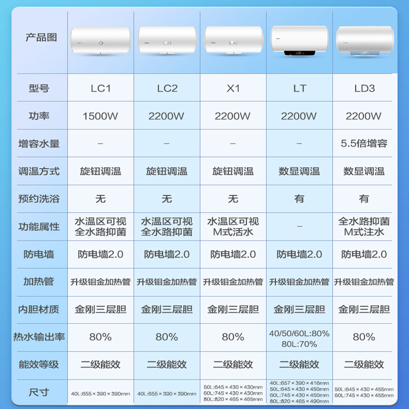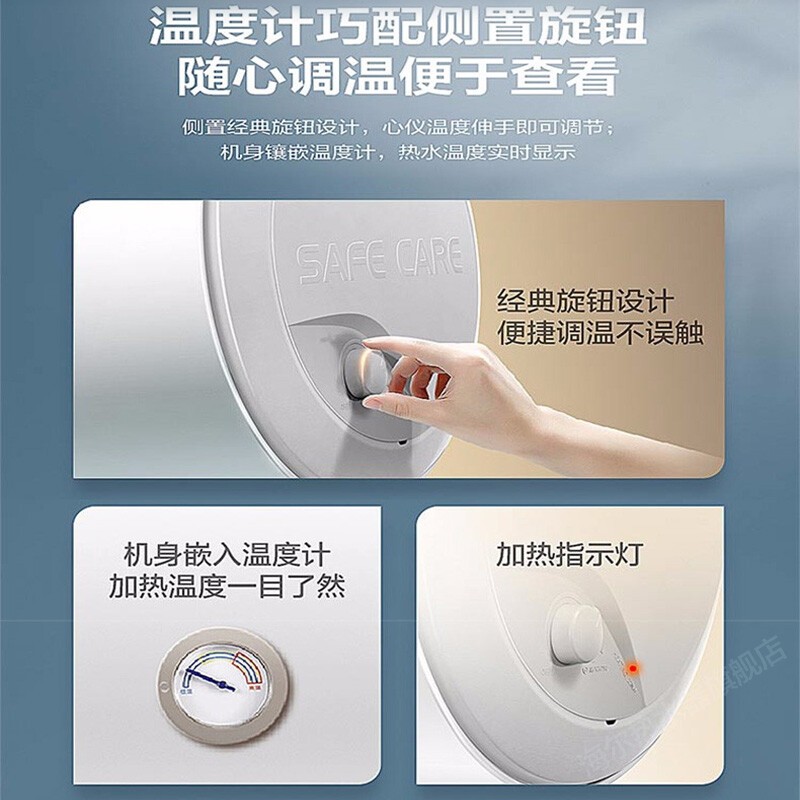安全省心,搭载专利防电墙,安心边洗边加热,澎湃速热,2200W加热功率,比2100W加热速度提升5%,节能省电,80%热水输出率节能省电沐浴没负担,健康抑菌,99.9%抑菌率每天都洗健康澡,便捷舒适,人性化旋钮操控调温简单又便捷,自由安装,精巧小机身,大小浴室从容安装。