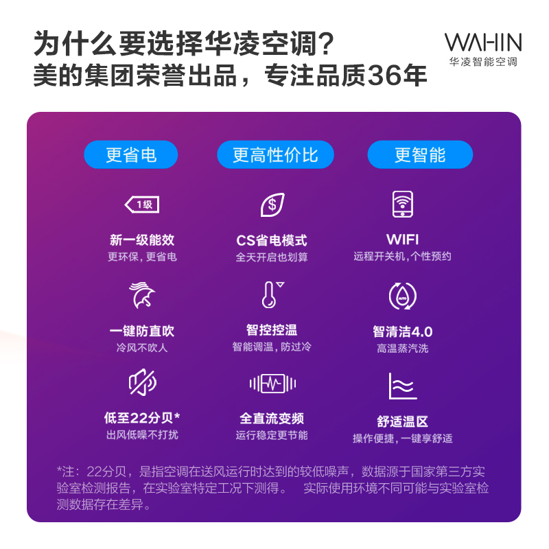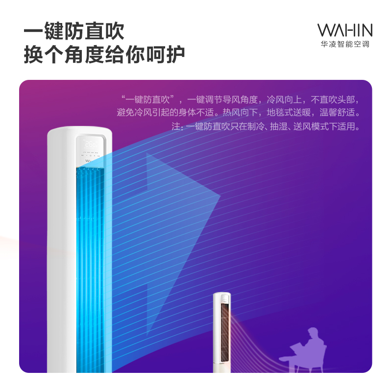 这款华凌立柜式空调,新一级能效,更环保,更省电。智能调温,防过冷,舒适温区,操作便捷,一键享舒适,一防直吹,冷风不吹人。CS舒省,全天开启也划算。第四代自清洁,高温蒸汽洗。静音低至22分贝,出风低噪不打扰。全直流变频,运行稳定更节能。wifi智控,远程开关机,个性预约。