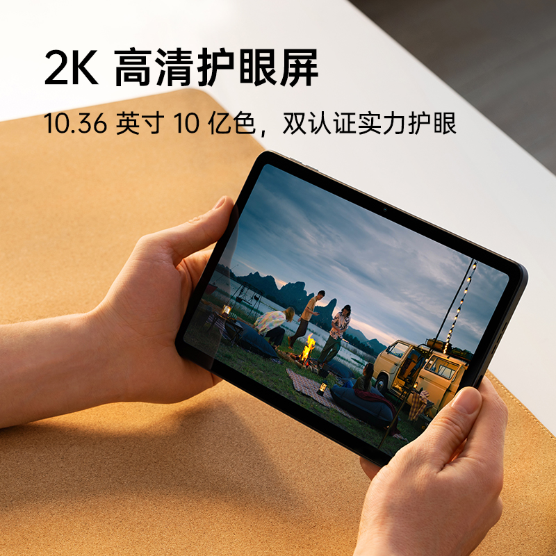 屏幕方面,OPPO Pad Air 搭载了一块10.36英寸LCD显示屏,8mm超窄边框,分辨率为 2000x1200,最高亮度360nits,支持60Hz刷新率、2048级自动亮度调节,10亿色显示,通过德国莱茵低蓝光认证+国家眼科工程中心评测,双重护眼保障。