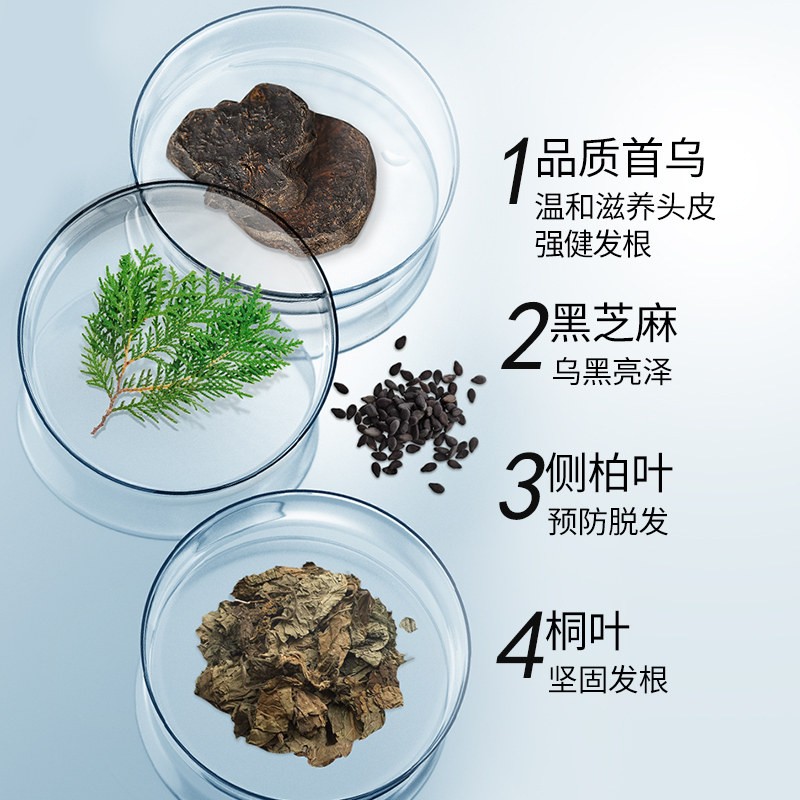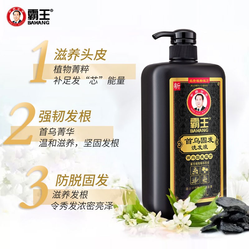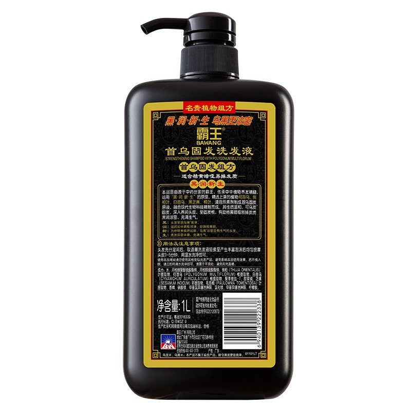 霸王(BAWANG)推出的这款洗发液,内含首乌、侧柏叶、黑芝麻、桐叶等成分,改善脱发现象,修护受损伤发质,为秀发补充所需营养物质,调理和滋润头皮,强化发根,令头发乌黑浓密、顺滑亮泽。产品质地轻润,泡沫绵密,并带有草本清香。适用于枯黄、易掉发质。