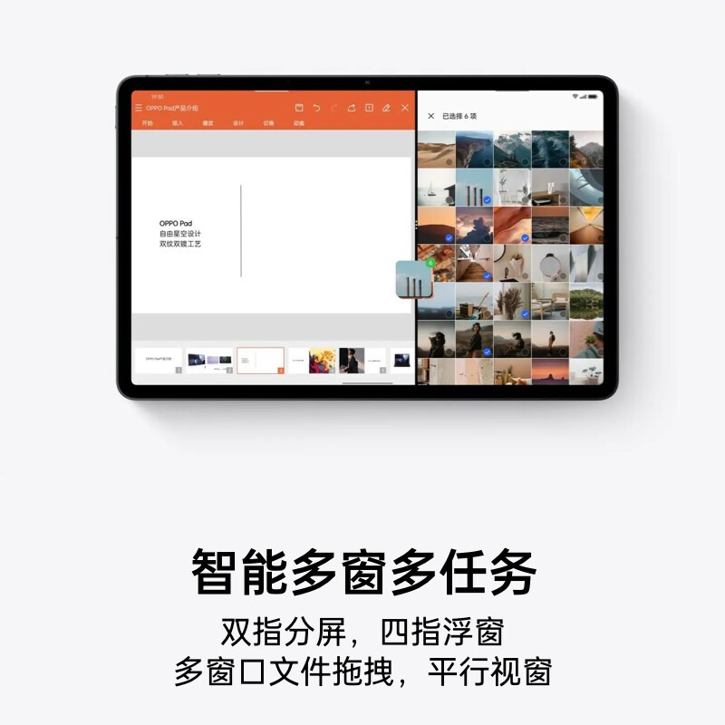 系统方面搭载ColorOS for Pad系统,支持双指智能分屏、四指浮窗,超过3000+应用适配,支持跨屏互联,文件无缝传输。