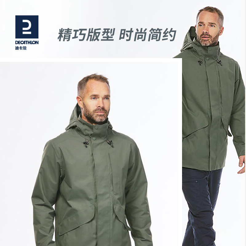 迪卡侬 NH550 PRO 男款户外夹克,高领设计+科技面料,出色防风,抵挡高达70公里/小时风速,2,000毫米防水涂层+密合接缝,有很好的防水性。经典户外夹克外形,连帽设计,腰部可调节松紧,背部下摆有褶裥,方便跃步或坐下。6个口袋:1 个带拉链的内口袋,胸部 1 个带拉链的口袋,2 个插手口袋,2 个魔术贴口袋。