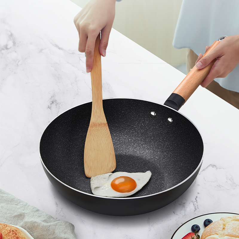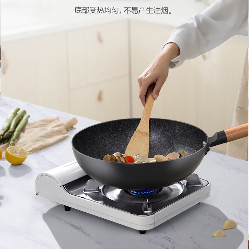 美的(Midea)推出的这款炒锅,锅内涂层为麦饭石色不粘涂层,不易粘锅,节省清洗时间。锅底平整,升温迅速,导热均匀,不易产生油烟,适用于多种炉具。锅身加深设计,翻炒流畅。搭配可立可视钢化玻璃锅盖,拿放方便,节省空间,随时掌控烹饪进度。握感舒适的榉木手柄,隔热防烫效果好;锅身结合处有304不锈钢铆钉接合,坚固耐用。