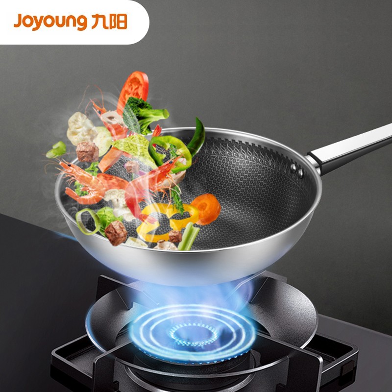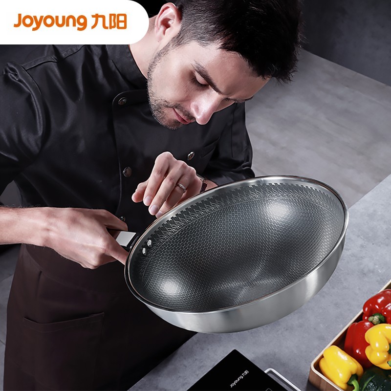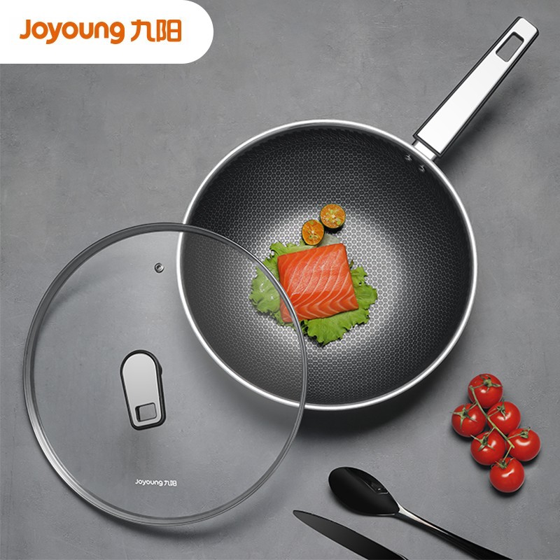 九阳推出的这款炒锅,选用316L不锈钢制作,锅内表面有蜂窝纹路,耐磨不易粘锅,节省清洗时间。锅底导热均匀且快速,适用于明火、燃气灶、电磁炉和电陶炉。搭配可视玻璃盖,随时把控烹饪进度。手柄隔热防烫效果好,握感舒适不费力;铆钉固定,不易松动。