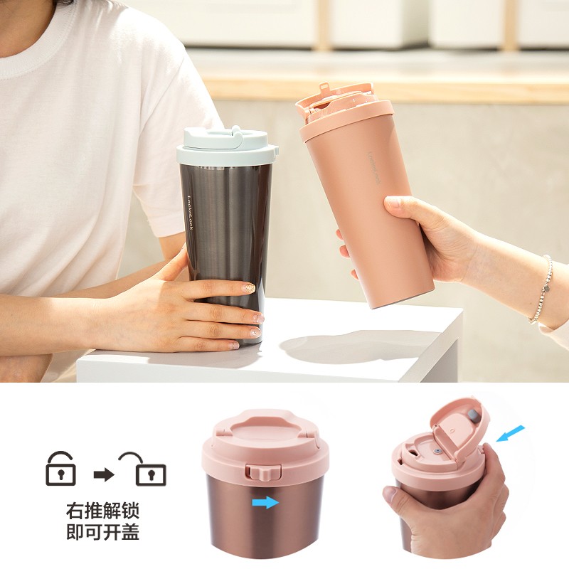 采用316不锈钢内胆,根据官方数据,在20℃±5℃环境下,95℃±1℃热水经过6小时后温度可维持在52℃以上。一键按压弹跳盖,开盖锁定键二合一,按钮滑动至开锁状态按压即可打开。杯身上宽下窄,磨砂处理,手感舒适。