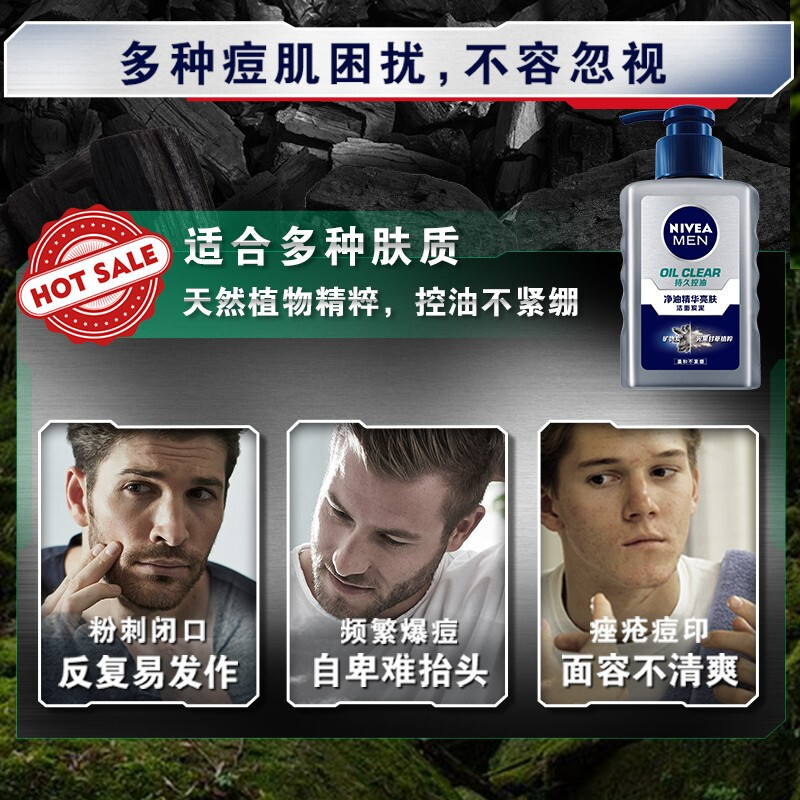 妮维雅因为其性价比较高,价位比较亲民成为不少男性的护肤选择。这款NIVEA 妮维雅 男士净油精华 亮肤洁面炭泥,专为男士设计,含纳米清洁分子,深层清洁毛孔的同时,温和控油不紧绷,提亮面部肤色,适合夏天使用,内含墨角藻精华、薄荷醇提取物能够收缩毛孔,冰霜醒神,可满足一般男士的基本需求,规格150ml。