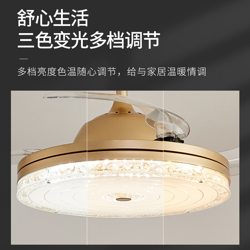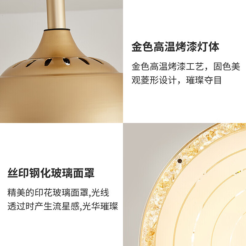 本款灯具采用轻奢美式风格,搭配质感合金材质,彰显主人生活品味,牢固悬挂吊环,杜绝安全风险,支持开关和遥控器双重控制,使用起来更方便~