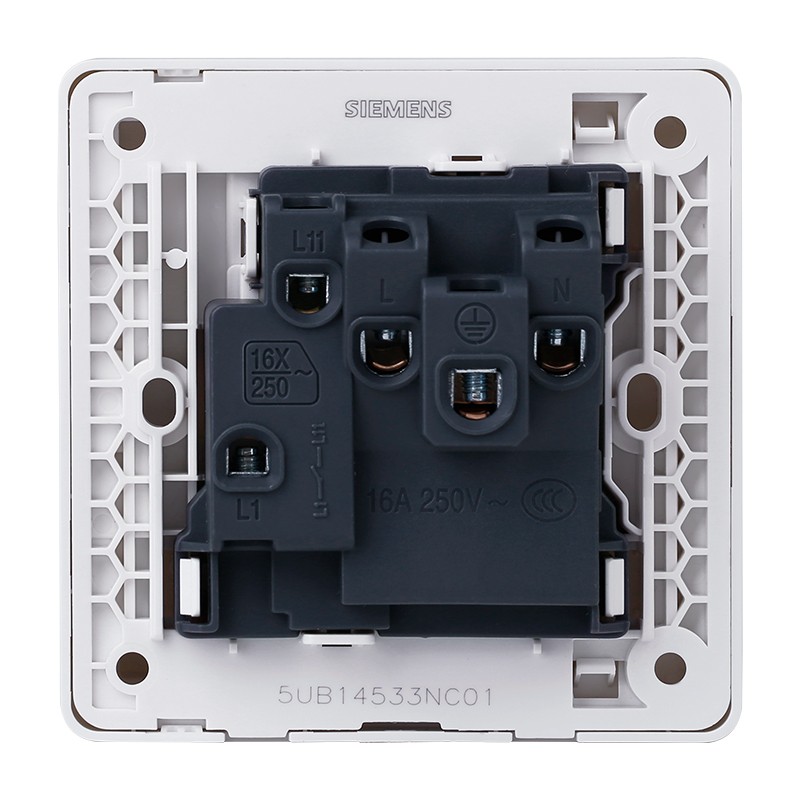 西门子这款3孔插座,采用蜂窝式支架结构,增强支架强度,安装可靠牢固。银点加厚≥0.3mm,耐灼烧,轻松承载LED灯具的瞬时电流。粗大压线螺丝,力压电线不脱落。安装孔开槽设计,增添抗压空间,避免主体受力变形。内置儿童防触电保护门,厚度增至2mm,防止细小物件插入导致触电危险。