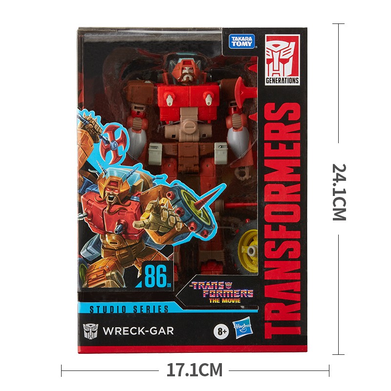 SS86-09 V级营救车玩具全高约为16.51厘米。作为以《变形金刚》电影为主的SS系列新品,营救车还原了《变形金刚》86大电影中垃圾星上的垃圾大王造型。人形头雕脸上招牌的两撇胡子,胸口两门炮。不过虽然是V级,但是从人形大腿也能看到很明显的偷胶。载具形态下摩托整体性非常不错,有着淡蓝色半透明风挡与车尾的工具箱,不过玩具的两个车轮是拆卸式变形。除了两个车轮外,附件中还包括了标志性的斧头。