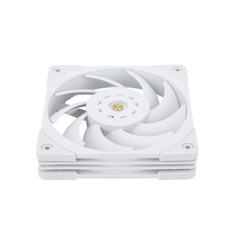 利民thermalright B系列首款白色风扇,采用三轴动平衡校正工艺, 单扇重量205克,俗称四两扇,但同时也是性能级风压扇,最高转速2150转,风压2.87mm H2O,风量69CFM,噪音28.1Dba。提供6年质保。