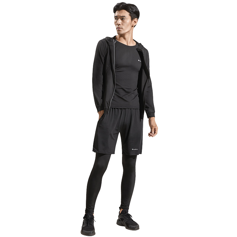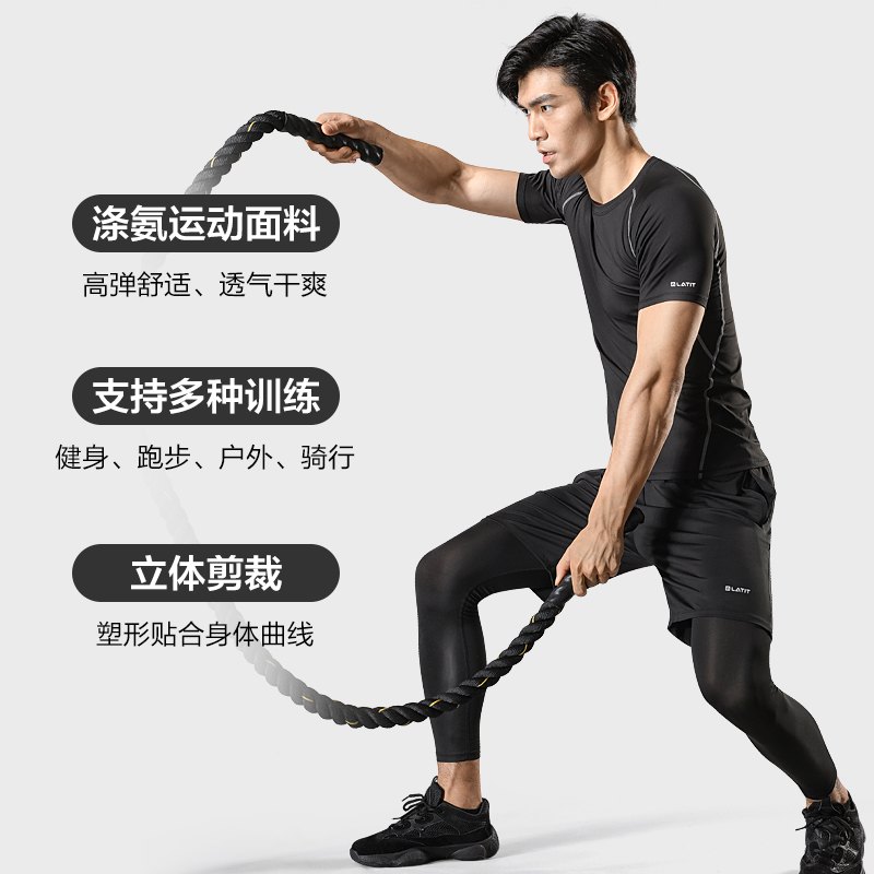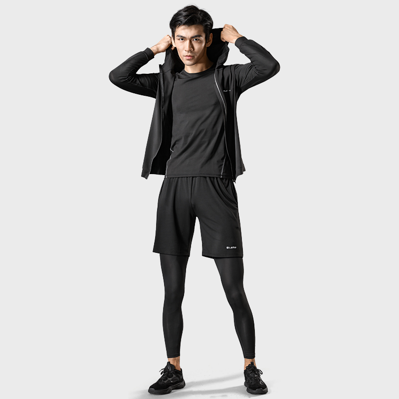 LATIT推出的这款男子运动套装,有T恤、背心、短裤及长裤共四款产品、多种组合套装可选择。均选用90%涤纶和10%氨纶面料制成,具有轻薄透气、吸湿排汗等特点,上身清爽不闷热。均以黑色为主色调,简洁大方。同时色牢度高,长时间浸泡不易浮色或掉色。