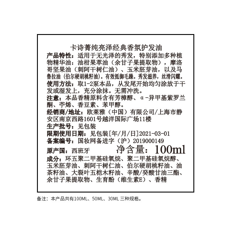 卡诗这款护发精油被誉为“神仙金油”,获得过多项美容大奖,是品牌的镇店之宝。四种精油调配而成,主打全效修复,针对所有发质,特别推荐干燥受损发质使用。质地介于水油之间,轻薄好吸收,而且吸收后头发不黏不腻,反而觉得很清爽,连抹过发油的手也是,用完后头发自然柔顺有光泽,毛躁干枯是路人,味道清香淡雅,使用方式不拘一格,洗发前洗发后都可以使用,平常头发干枯也可以用来滋养发尾,用量超省,一次使用1~2泵,发质改善一大步。