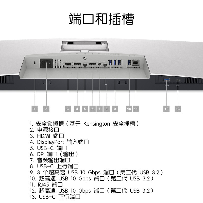 这款显示器分辨率为3840*2160,采用IPS Black技术,对比度为2000:1,通过Display HDR400认证。支持连接两个PC源,支持自动KVM功能,支持画旁画(PBP)和画中画(PIP)。内置低蓝光功能。支持以菊花链方式连接两台4K显示器。支架支持旋转倾斜调节。显示器带有USB-C(最高90W功率传输)RJ45网口。