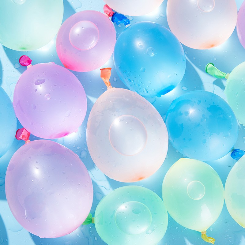 夏日必备玩具,玩水装备。3束装111个气球~自动捆扎,充水后一拉即绑,尺寸适中,方便抓握投掷。