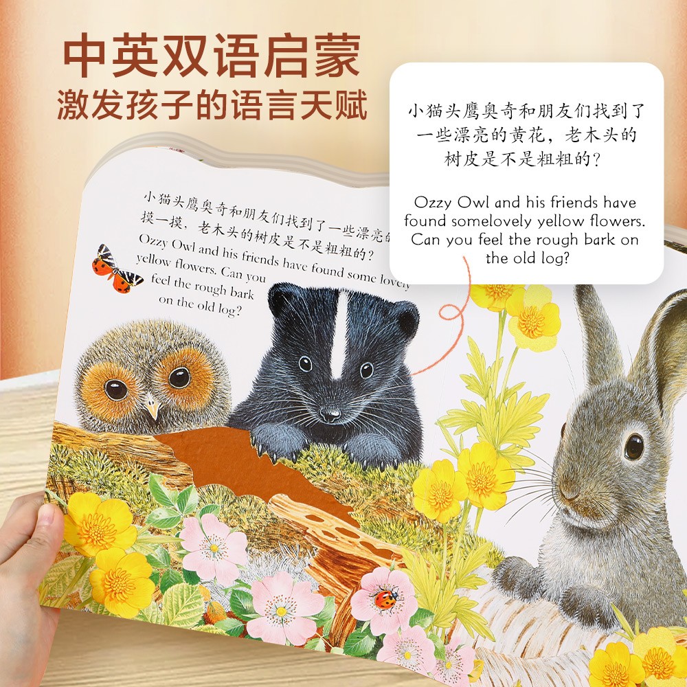 这套《亮丽精美触摸书系列》不仅是书,更是玩具。由国际知名艺术家普莱格尔打造,该系列畅销千万册。通过20多种真实触感的材料高度还原了25种小动物,它们毛茸茸、软绵绵、亮晶晶,栩栩如生的在书中呈现,写实画风,细致刻画自然界动物的形态,真实还原认知对象的特征,让孩子足不出户感知大自然。中英双语故事,亲子互动中促进语言发展。
