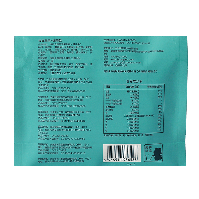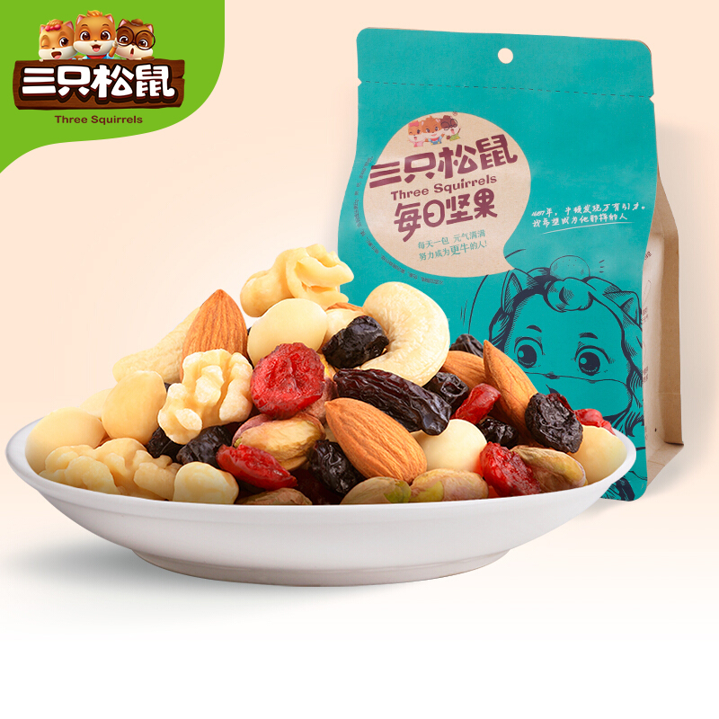 三只松鼠(Three Squirrels)这款每日坚果,选用巴旦木仁、开心果仁、榛子仁、夏威夷果仁、腰果仁、核桃仁等坚果和蔓越莓干、蓝莓干等果干,富含蛋白质、膳食纤维、钙、铁等矿物质和维生素等营养物质。坚果口感酥脆,果干温润自然。独立小袋包装,携带方便,开袋即食。保质期为180天,请置于阴凉干燥处保存。