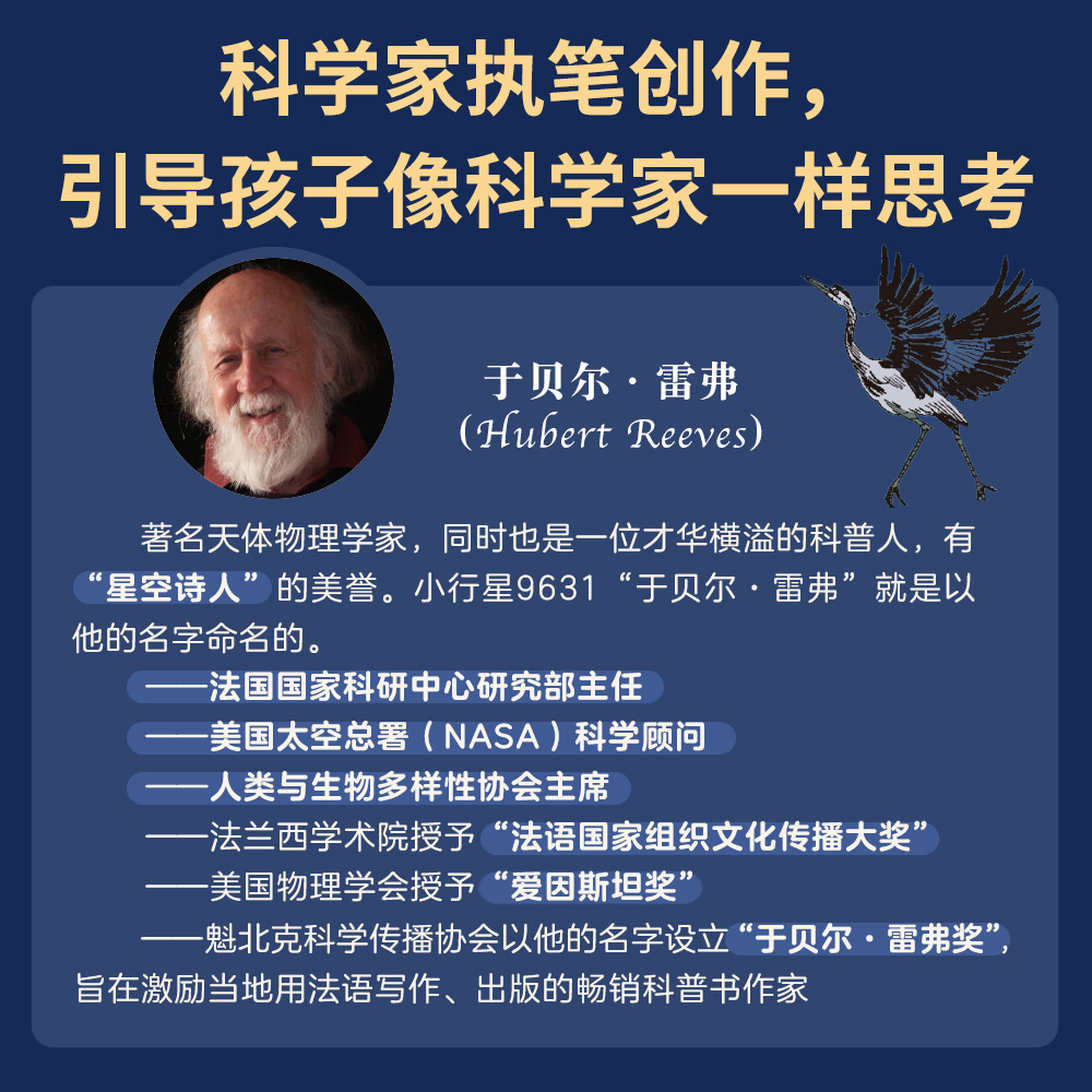 《听于贝尔讲海洋》,于贝尔·雷弗带领孩子们在诺曼底看海崖,又到圣米歇尔山看潮汐,然后从亚速尔群岛深入海底,最后在佛罗里达州海岸体验墨西哥暖流,每到一处,科学家都会讲解一个海洋知识点:海水膨胀、洋中脊、洋流、让孩子们的海洋之旅收获满满。《听于贝尔讲森林》,孩子们会跟随于贝尔·雷弗游览欧洲最古老的山脉之一——阿登山脉。从森林的四个层次,到里面居住的动植物,再到食物链,以及连接树木的地下通讯网络……听着于贝尔·雷弗的解释,我们好像真的就在那片生机勃勃的森林里。《听于贝尔讲生物多样性》,作为法国生物多样性部门的名誉主席,于贝尔·雷弗向我们解释了什么是生物多样性,并用很多简单、具体的事例告诉孩子们大自然与我们的生活息息相关。
