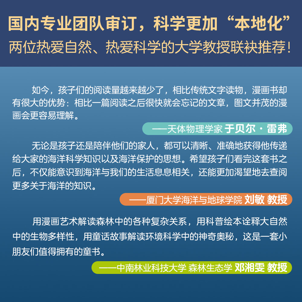《给孩子的科学漫画》分3册——《听于贝尔讲海洋》《听于贝尔讲森林》《听于贝尔讲生物多样性》,将海洋、森林及生物多样性的知识点穿插在孩子喜闻乐见的漫画中。大科学家于贝尔·雷弗平易近人、循循善诱的细致讲解,搭配漫画家的趣味插画,让阅读变成一次次神奇的科学旅行,让孩子轻松掌握知识的同时,培养孩子像大科学家一样观察和思考。