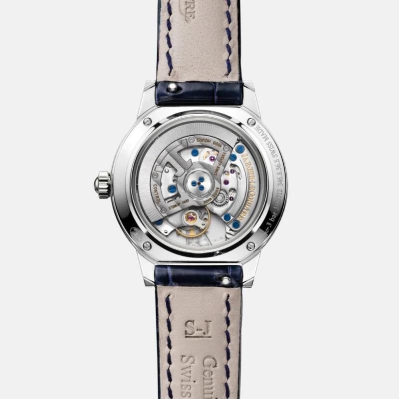 JAEGER-LECOULTRE 积家 约会系列 女士自动机械表 Q3468410 ,典雅外形和圆润经典的设计令人陶醉,昼夜显示功能在任何时候都伴您左右,无论白天黑夜都散发出女性独特魅力,自动上链机械机芯,动力储存42小时/内部零件203枚,每小时振频28800次/宝石数量28颗/发条盒1个,厚度4.05毫米,细腻典雅的扭索纹饰或,温润迷人的珍珠母贝表盘上,指针轻轻掠过标志性的花体数字时标,专为女性打造,6时位置温婉圆润的窗口呈现昼夜显示,日月共舞于此,尽显诗情画意之美,或时标镶嵌美钻如繁星点点;或表圈铺镶钻石,闪耀璀璨光环。