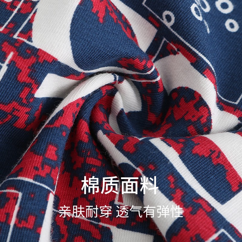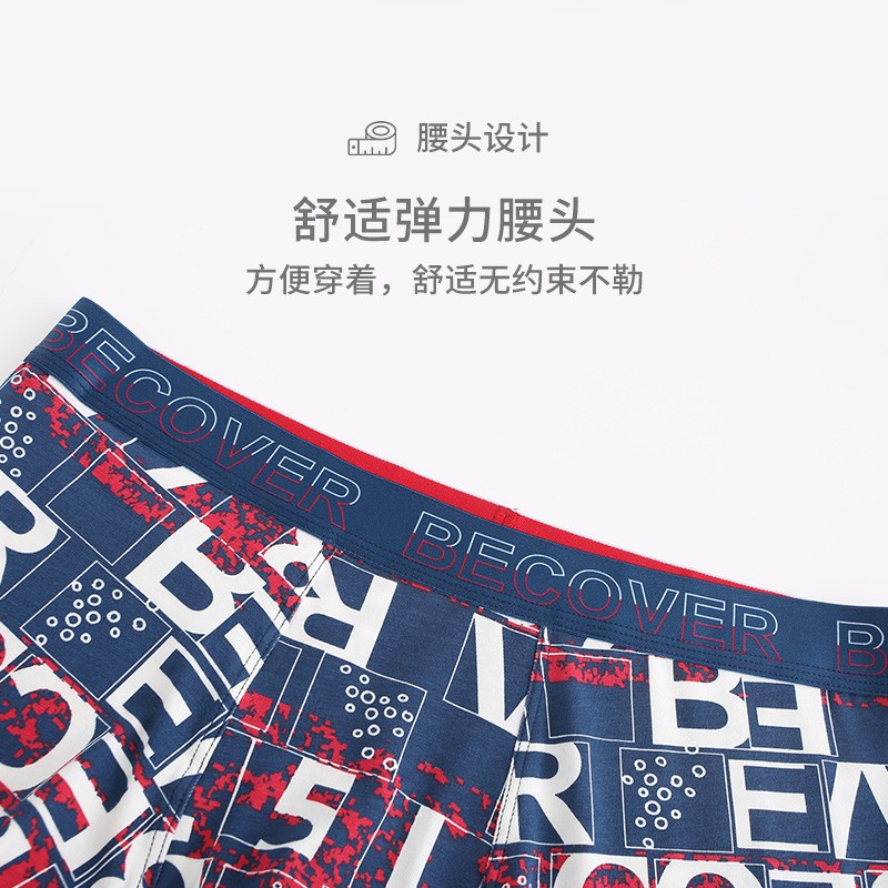 这款男士棉质潮流印花平角内裤,BECOVER系列,丰盈新色,俏皮印花,更多选择。宽边弹力腰头,不勒无拘束穿着舒适。柔软亲肤,选用舒适面料,不易起球,不易变形,穿着轻松舒适。U型仓凹凸设计,立体裁剪,使得穿着舒适自由无压力。