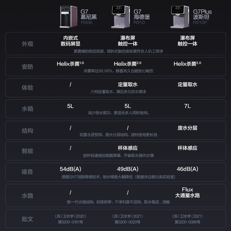 5级深度净化,有效滤除水中有害物质,搭载碧云泉新一代反渗透RO膜,净化效果深达0.0001微米,从源头上抑制过滤中的污染可能,有效滤除水中的重金属、细菌、病毒、 微生物、硝酸盐、三氯甲烷、四氯化碳等有害物质,达到 国家直饮水要求,纯净鲜活,放心直饮。