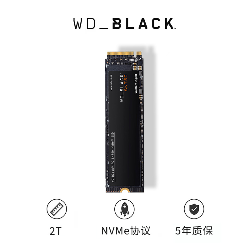 西数Black系列SN750固态硬盘采用M.2接口,2280规格,支持NVMe协议,采用64层3D NAND技术,共有250GB、500GB、1TB和2TB版本,其中除了250GB容量外,均带有定制散热片的版本。250GB版本顺序读写速度为3100MB/s,1600MB/s,寿命200TBW;500GB版本顺序读写速度为3470MB/s,2600MB/s,寿命300TBW;1TB版本顺序读写速度为3470MB/s,3000MB/s,寿命600TBW;2TB版本顺序读写速度为3400MB/s,2900MB/s,寿命1200TBW;质保时间5年。