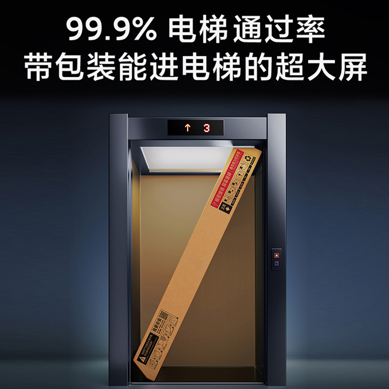 Redmi Max 86寸液晶电视首次采用自研的异形设计包装方案,将包装箱其中两边经过钻石切角处理,并搭配EPP缓冲材料,合理利用每一寸空间,让电梯通过率达到99.9%,解决了超大屏电视“不能带包装进电梯”的用户痛点。