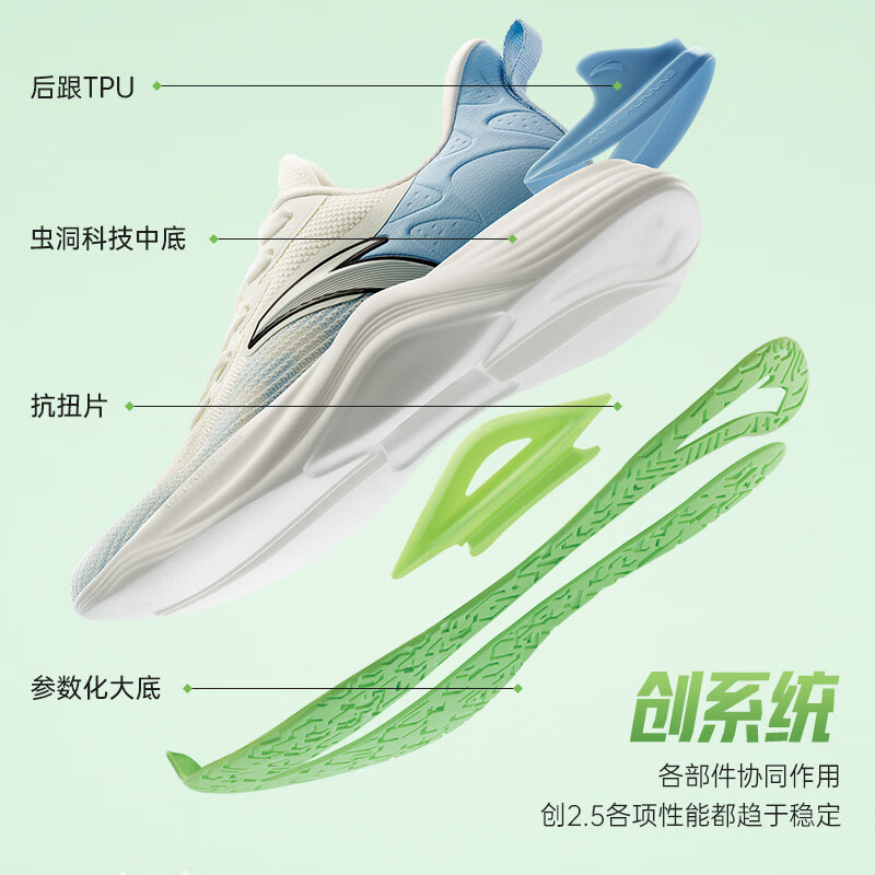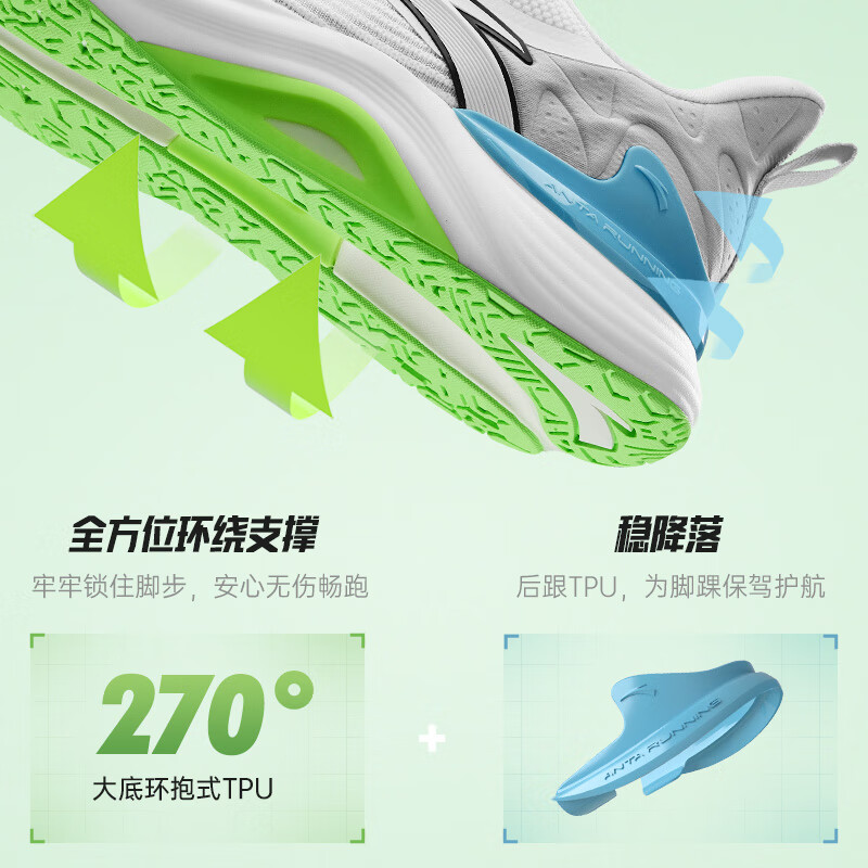 ANTA 安踏 创2.5 男款跑鞋,致力于“无短板”跑鞋系统,打造真正的六边形战士,搭载A-TRON SYSTYM 创系统,虫洞科技中底,恰到好处的缓震性和回弹性,自适应后跟TPU,有效防止翻转,稳定降落避免运动带来伤害,A-WEB帮面材料,增加透气性。