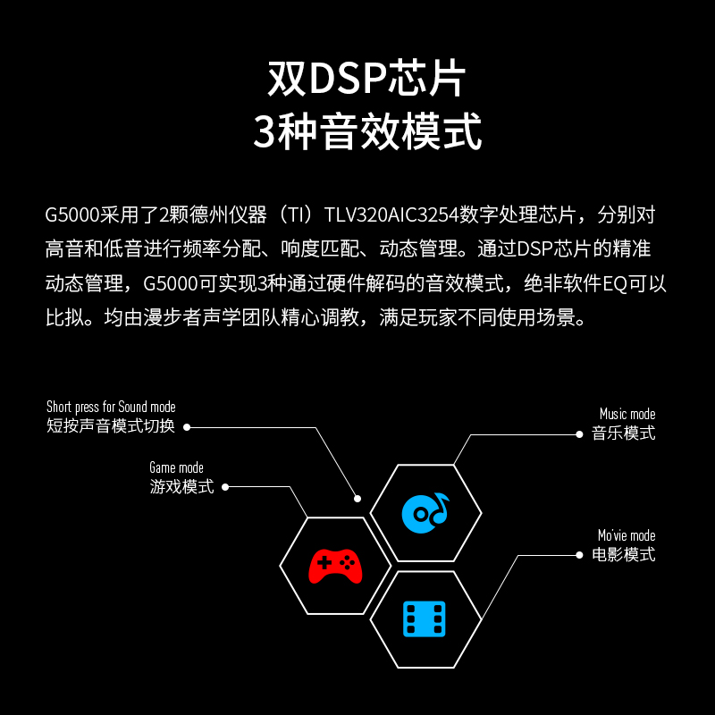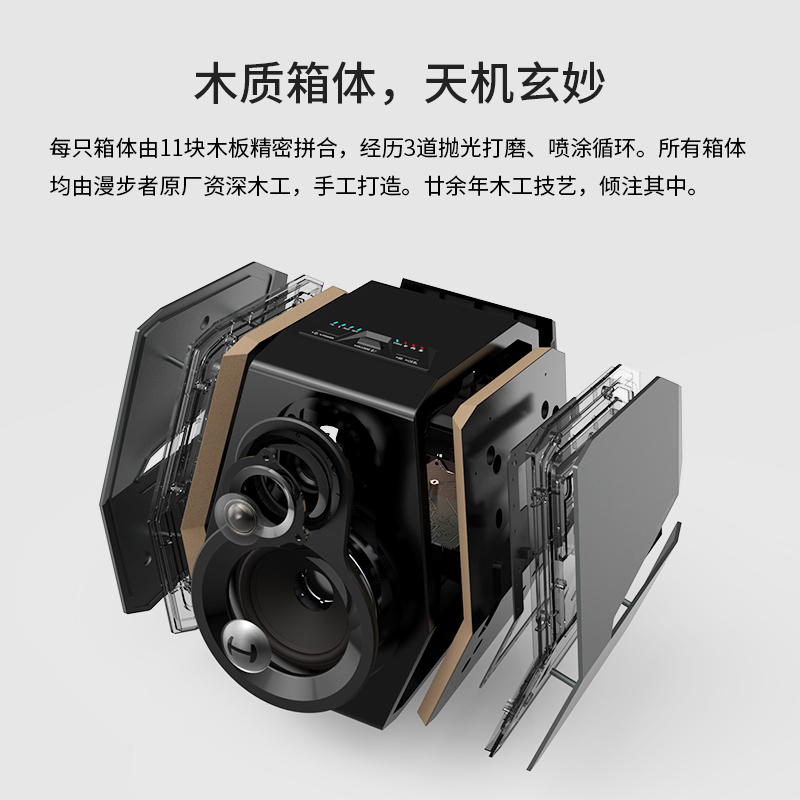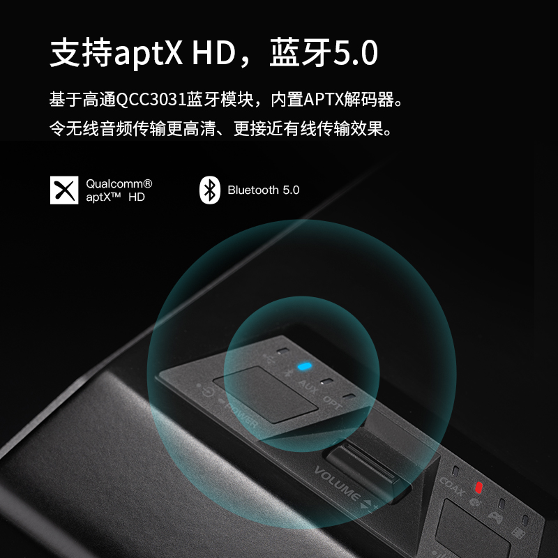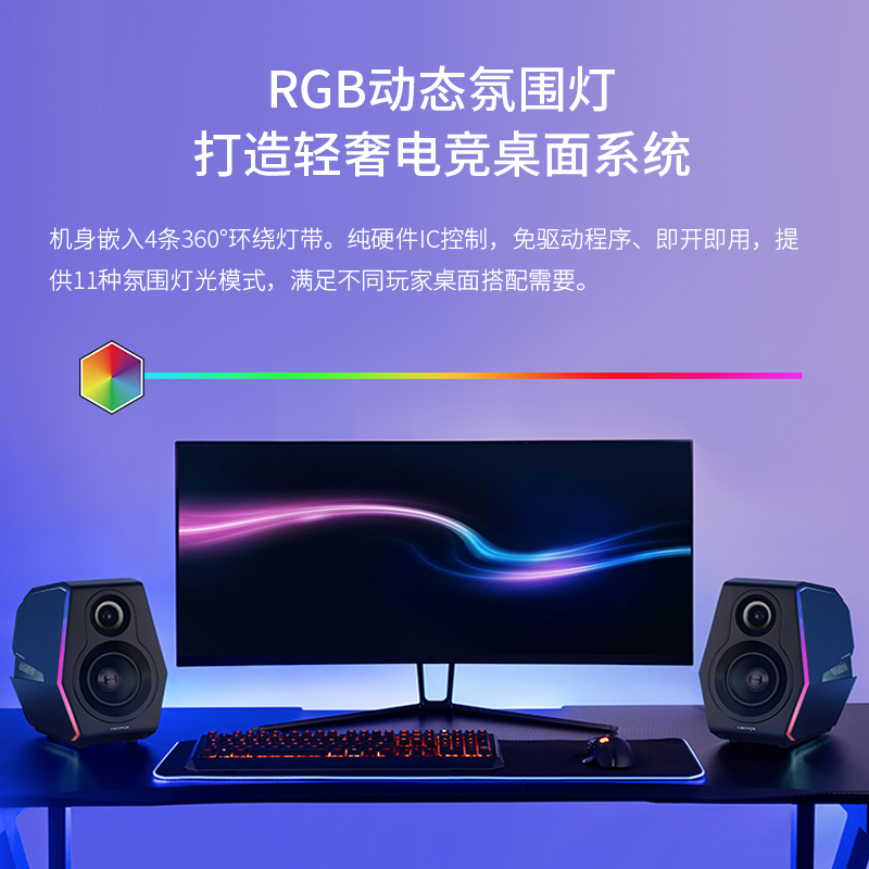 HECATE G5000采用木质箱体与铝金属侧板混搭,每只箱体由11块木板精密拼合,经历3道抛光打磨、喷涂循环,使音箱具备优秀声学表现和未来感设计。配合旗舰级声学配置和RGB动态氛围灯光效果,提供11种灯光效果。基于高通QCC3031蓝牙模块,内置APTX解码器,令无线音频传输更高清、更接近有线传输效果。支持Aptx-HD解码,配备Hi-Res高解析数字音频,呈现更丰富的游戏音效细节,带来沉浸式游戏体验。G5000采用2.0架构,配合88W不失真总功率,构建超大声场。采用钛膜球顶高音单元以及Nomex振膜中低音单元,带来HiFi音质体验。