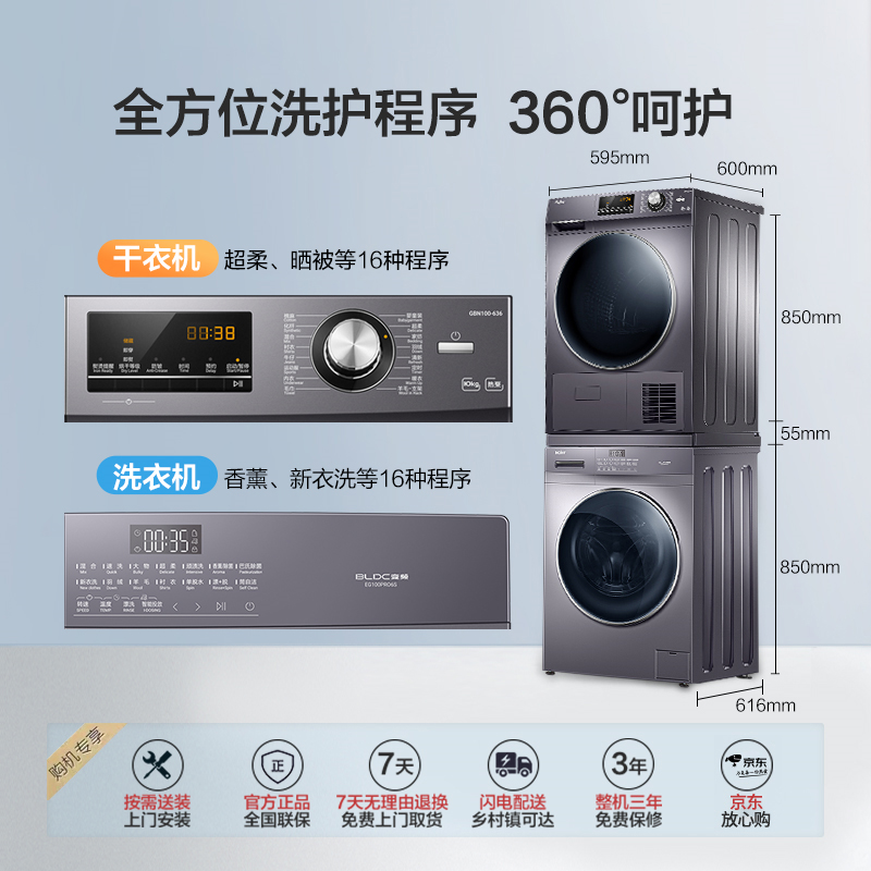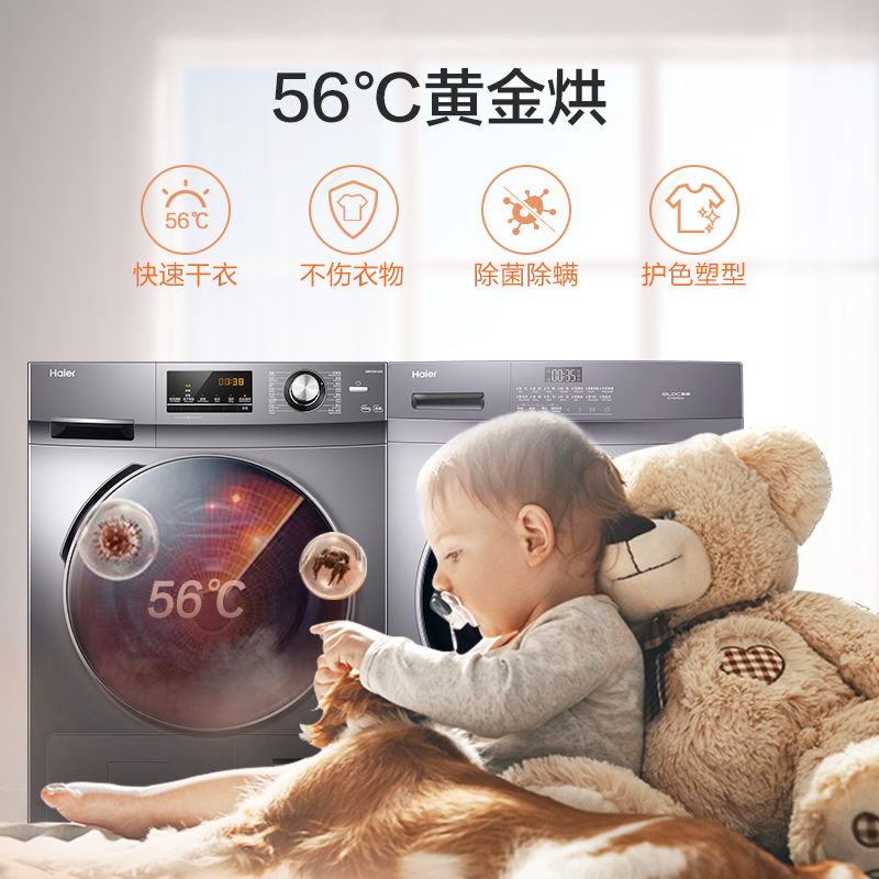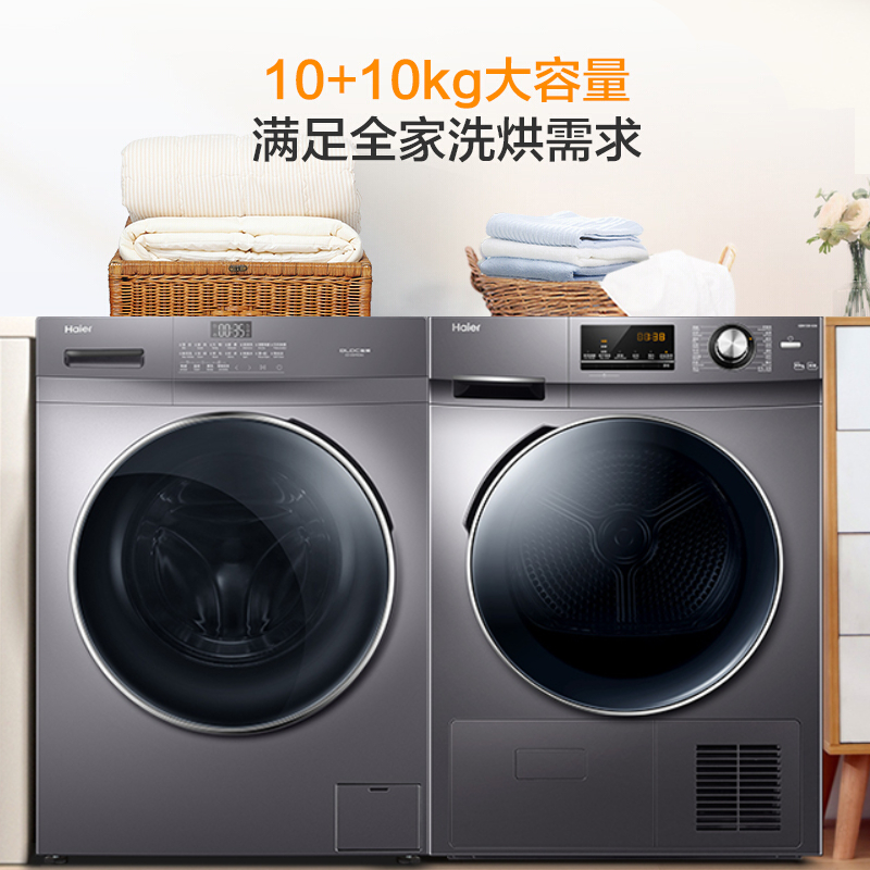 海尔 香薰系列 EG100PRO6S +GBN100-636 热泵式洗烘套装搭载BLDC变频电机,脱水转速1400转/分,动力强劲,运转平稳静音。升级智能投放2.0,自动根据衣量加入适量洗衣液,减少浪费或洗不干净的情况,便捷省心。具有蒸汽除菌功能,通过60℃左右的微蒸汽循环,可舒展衣物,并有效杀菌,配合额外香薰盒,还可为衣物增加香气。机身支持90℃自清洁,具有双喷淋、抗菌窗垫等技术。特有忘取无忧功能,通过间隔正反转,抖散衣物,不能及时取出洗好的衣物,也不用担心异味、褶皱,整机新国标1级能效,洗净比1.08。
