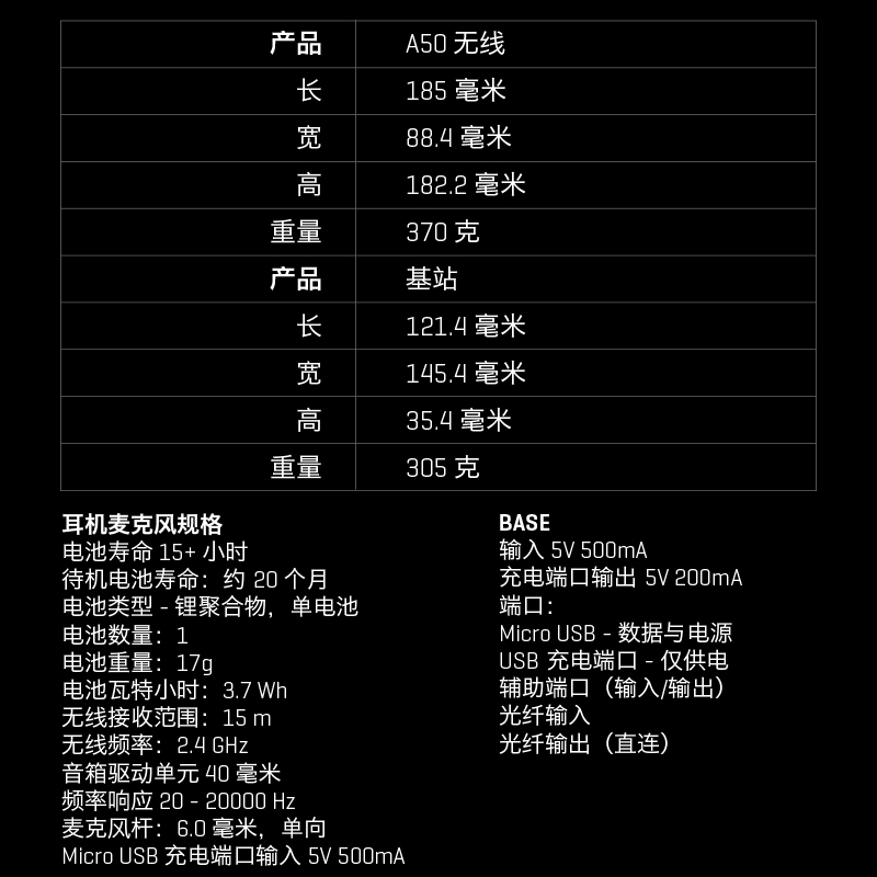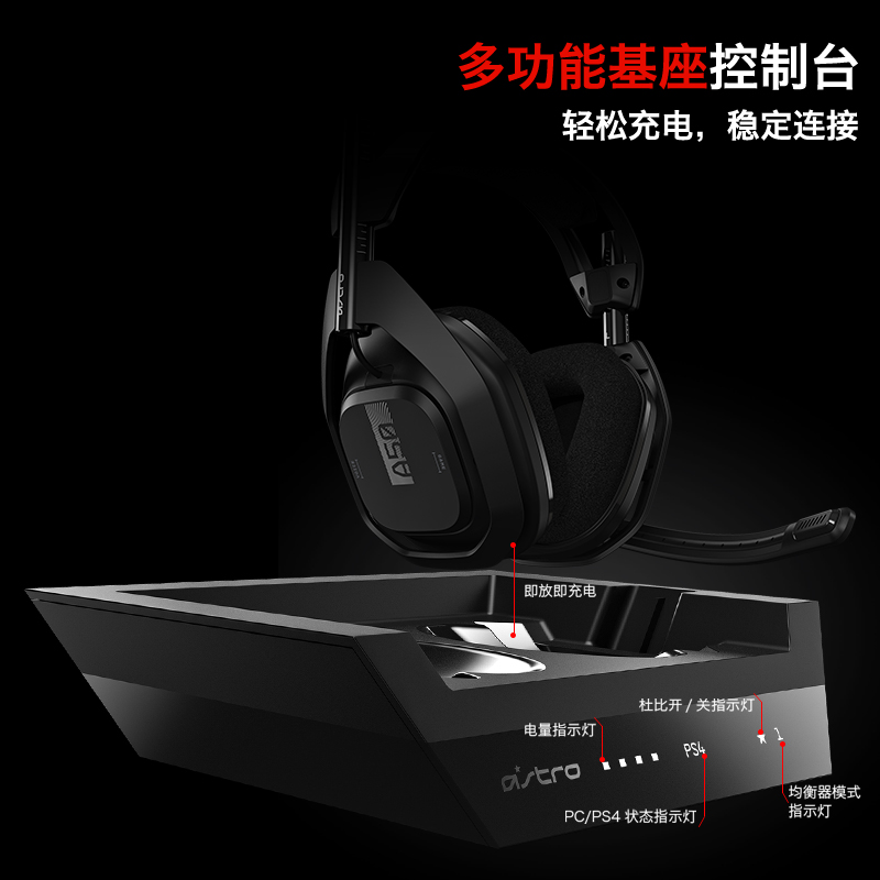 017 年 8 月罗技宣布完成了对北美高端游戏耳机品牌 ASTRO Gaming 的收购,Logitech 罗技 G Astro A50 游戏耳机就是收购后的全新旗舰产品,电竞代言人陈赫为其站台,耳机经ASTRO Audio V2专业声学调教,DOLBY杜比环绕声加持,让你如临现场,声临其境。电竞级2.4GHz无线传输,配以多功能基座台,内置USB声卡,便携充电,提供TOSLink光纤接口和AUX接口,满足发烧玩家需求。15+小时续航,MixAmp音频控制器,自定义均衡器设置,适用于多种场景。
