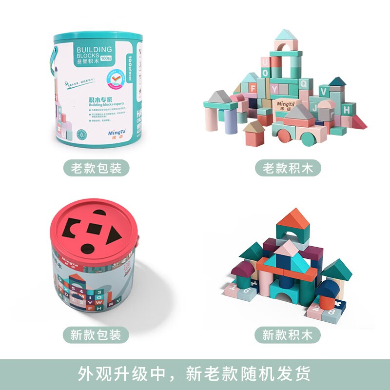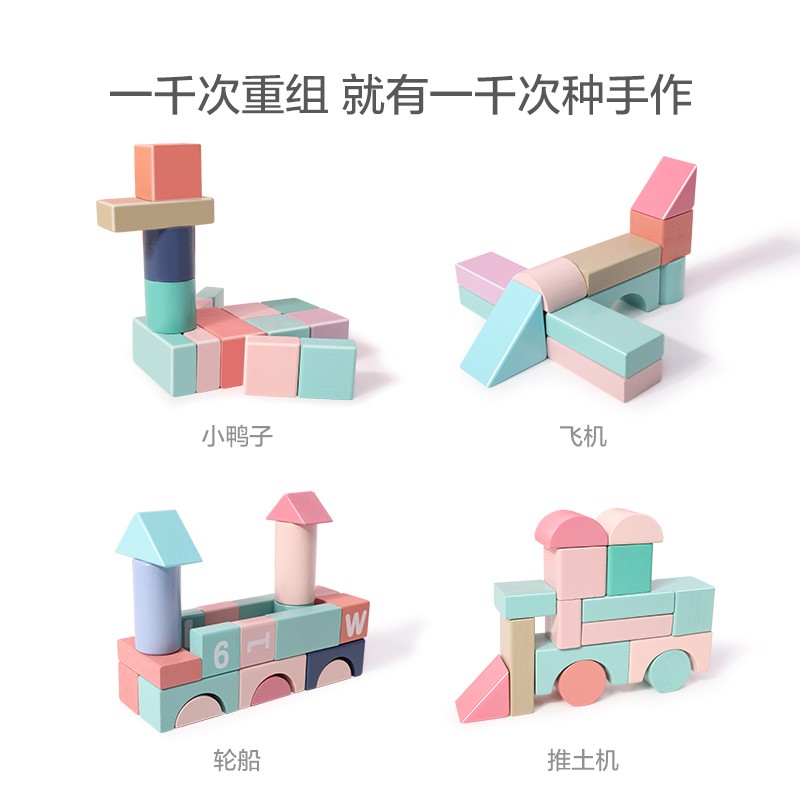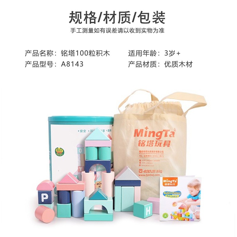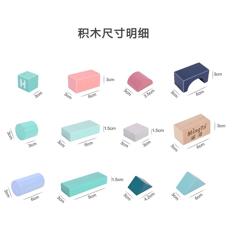 铭塔大颗粒实木积木,100粒,马卡龙配色,采用优质色粉调色,大颗粒设计,专为宝宝小手设计,轻松抓握,拼搭省力。稳固紧密,拼插牢固,旋转别易散开。木质无异味,宝宝玩的安心。加厚材质,密度细腻,圆角处理,坚固耐用。带有字母和数字设计,益智早教。