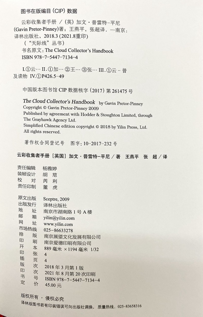 《云彩收集者手册》是著名气象爱好者组织——赏云协会的官方出版物,由会长加文·普雷特–平尼执笔,105位来自世界各地的赏云达人供图。这本精致小巧的自然观察手册将帮你解锁以下新技能:认识46种云彩和大气光学现象,知道何时需要带伞,坐飞机时不打瞌睡,增加与老人、孩子、陌生人的共同话题,在长假摄影比赛中一语道破“天”机……