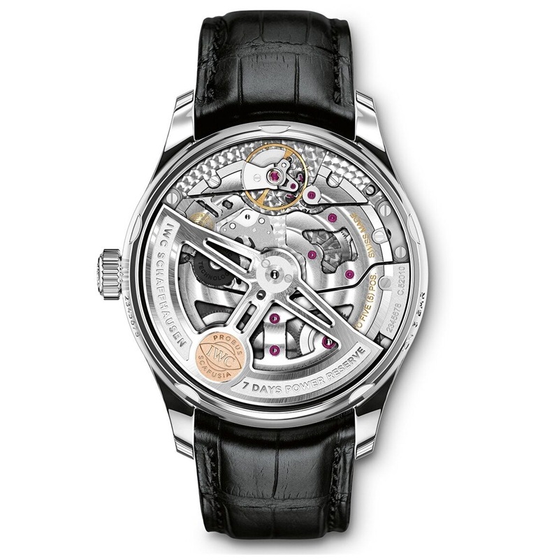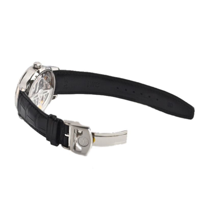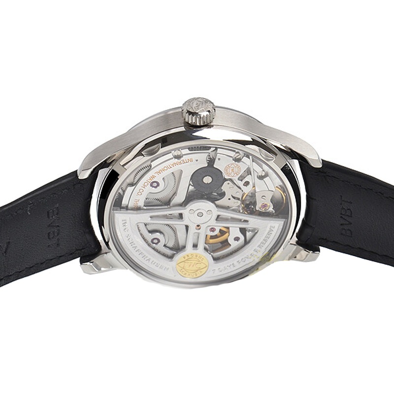 万国(IWC)瑞士葡萄牙系列机械男表,指针和刻度表镜采用人工合成蓝宝石玻璃材质。蓝宝石玻璃(SAPPHIRE CRYSTAL)一般是指人工合成的蓝宝石,与人们平常理解的珠宝蓝宝石有着很大的区别,一般用于腕表镜面的制造。它与钨钛合金和高科技陶瓷都是抗磨损的材料。这些材料虽能抗磨损,但却不能承受强力撞击,同时一些硬度相同或更高的物质(例如:磨石,砂纸,指甲挫,花岗石面,混凝土墙面及地面等)都有可能 会刮花这些材料的表面。