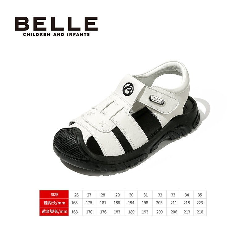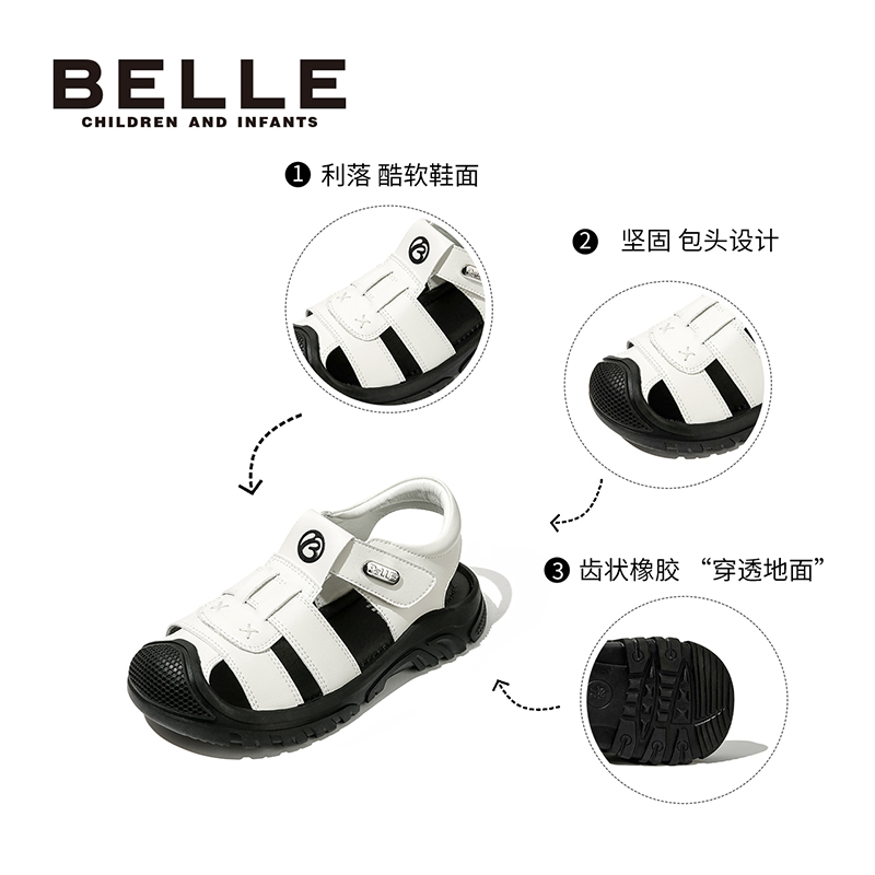 BeLLE百丽儿童沙滩鞋,拼接式鞋面,线条利落彰显帅气,中底、后跟带柔软加厚,亲肤跟脚,齿状橡胶底,强抓地、走山路也够稳,3000+柔软测试,穿着舒适耐磨。