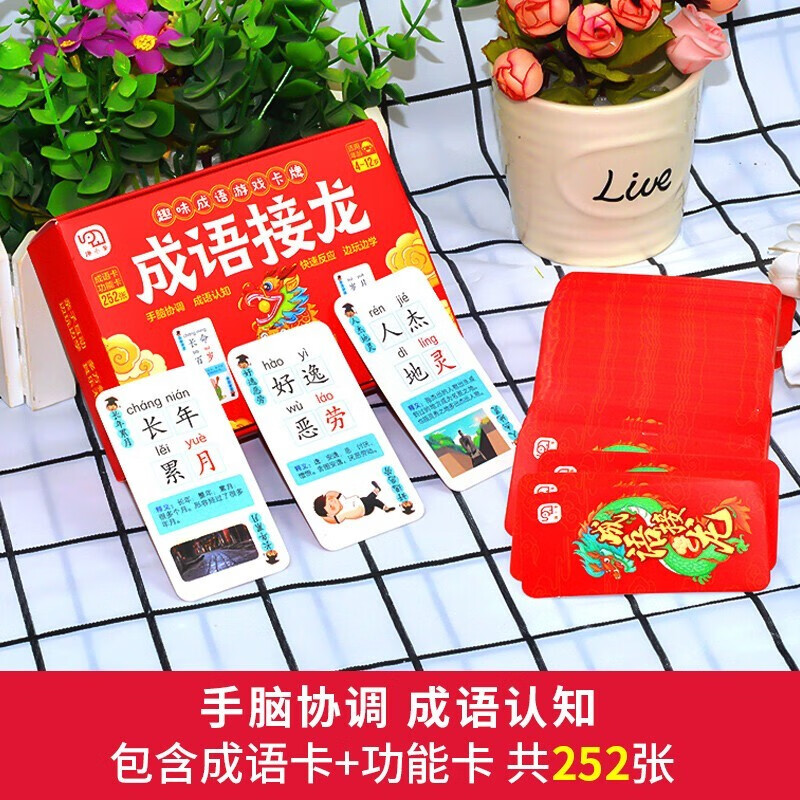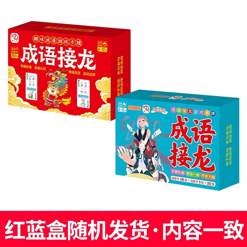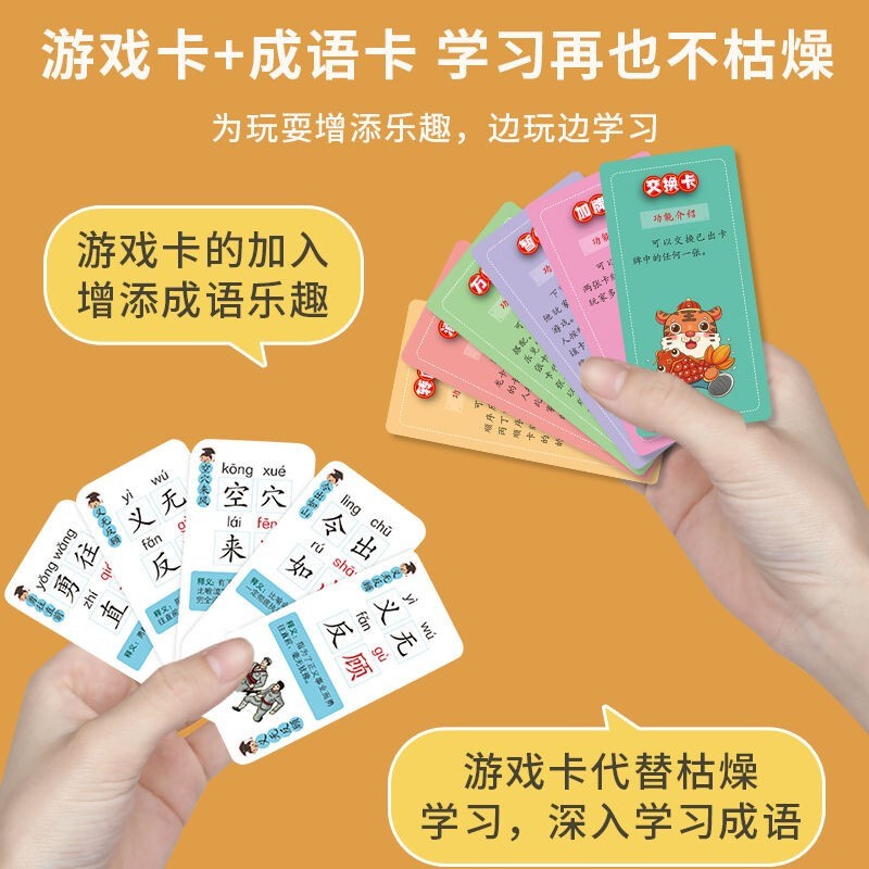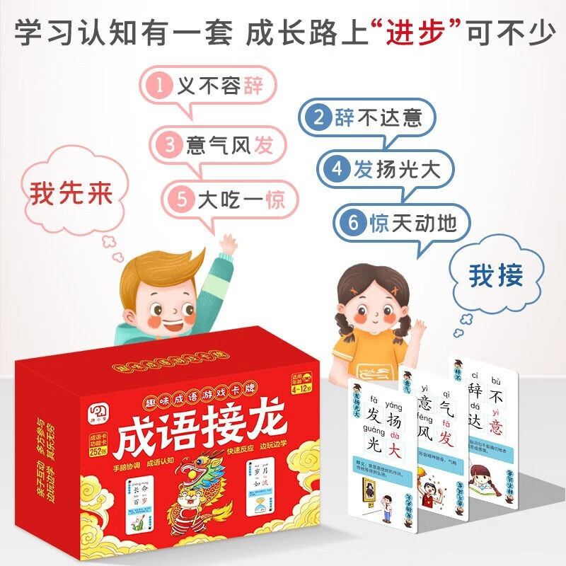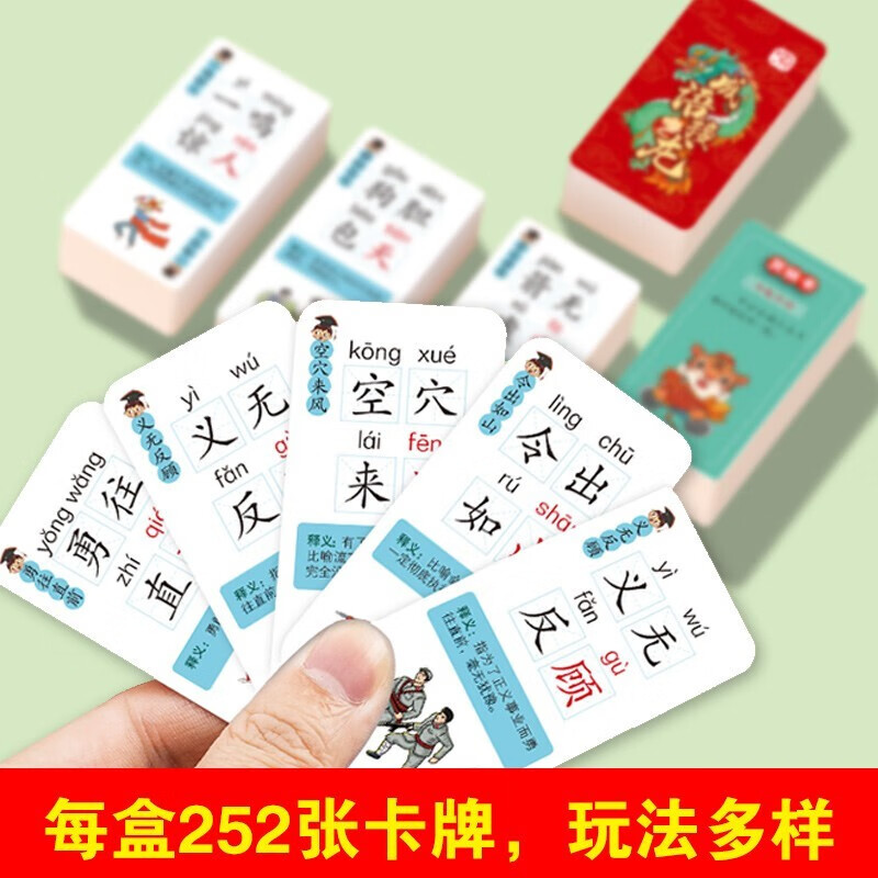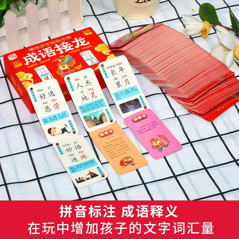 成语接龙亲子游戏牌 铁盒168张创意游戏设计,培养孩子反应能力,单人或者多人都可以玩,增加互动趣味,让孩子认识成语。纸牌设计无毛边,毛刺,摸起来舒服,方便孩子操作,安心玩耍。