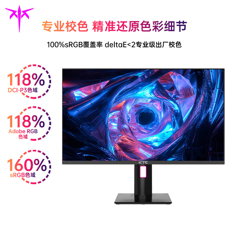 KTC M27P20Pro是一款27英寸 Mini Led专业显示器。峰值亮度达到1000尼特。deltae<2专业级出厂校色,对比度1000000:1,搭载160Hz高刷新率屏幕和1ms反应时间。附带90WType-C反向供电技术,一线解決视频连接与充电。自带2Wx2立体声音响,声光一体。支持满血HDMI2.1接口。