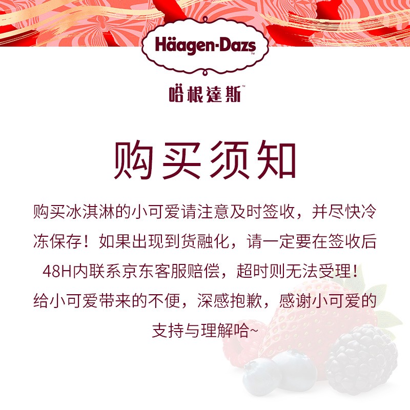 Häagen-Dazs哈根达斯为美国冰激凌品牌,始于1921年。在世界各国共开设超过900间分店,产品均坚持使用纯净、天然的原料。这款冰淇淋采用新鲜奶油,奶味醇厚,口味纯正,小包装更易保存,食用起来更为方便。规格为100ml。