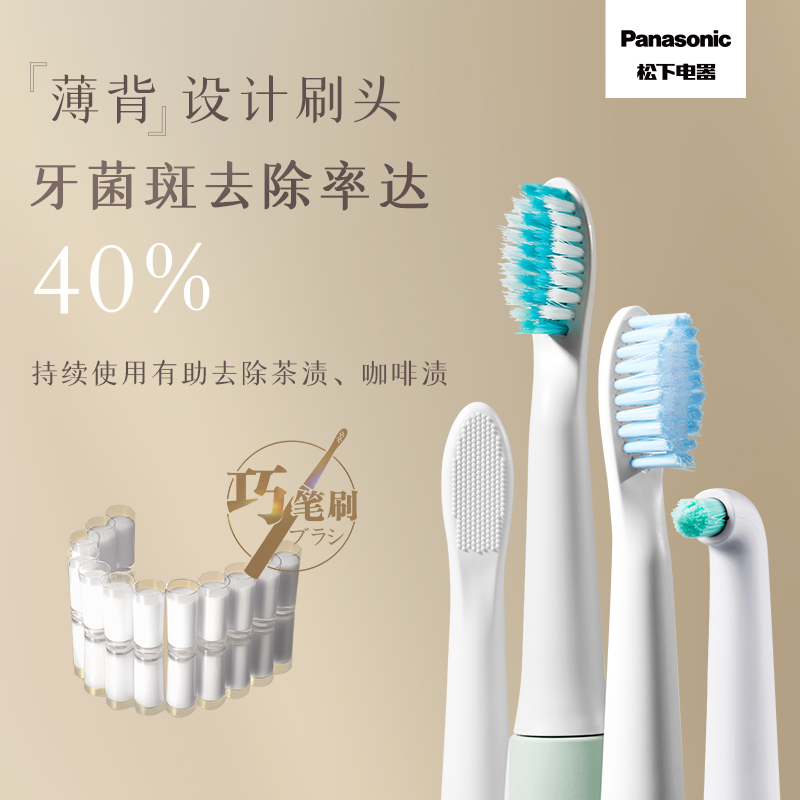 除了飞利浦和欧乐B,Panasonic(松下)也有出品电动牙刷,包含Doltz离子电动牙刷系列和声波震动系列。今天的这款EW-MDB3AN电动牙刷,其内置了声波微马达马达,配合薄背设计刷头,更以深入清洁后槽牙,约0.02mm尖端柔软细毛+毛尖端的3mm高度差,温和清洁牙齿缝隙和牙龈沟,温和不伤牙,持续使用有助于去除茶渍、咖啡渍。内置机芯可30s智能换区提醒,2min科学刷牙时间提醒,具有普通、轻柔两种刷牙模式,以满足不同口腔清洁需求。牙刷具备IPX7级别的防水能力,无惧刷牙时与水的亲密接触。充电时间8小时,可使用约10天。
