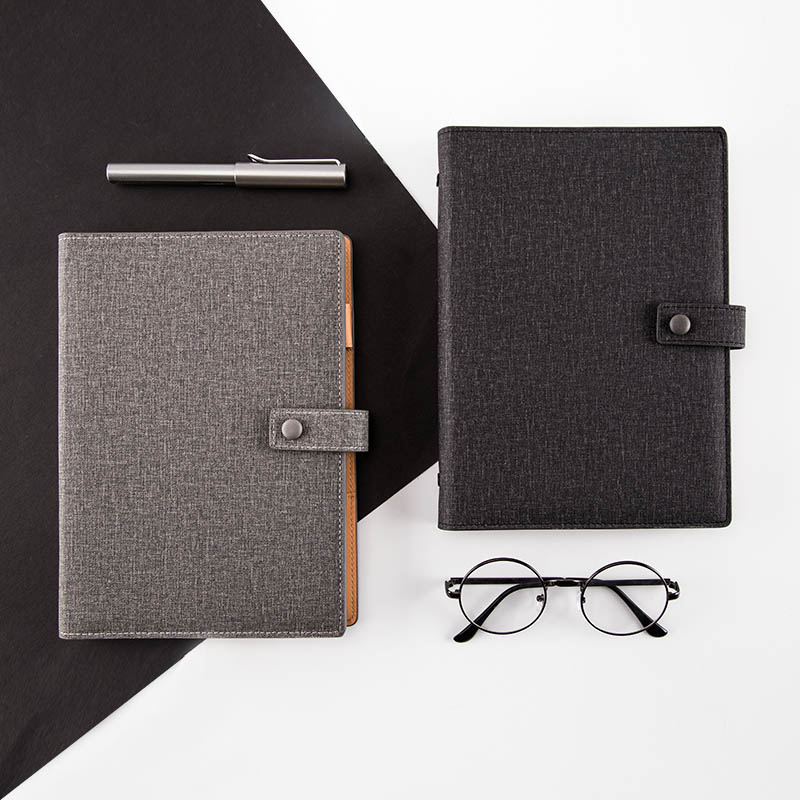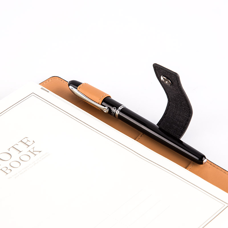 广博博彩按扣皮面本,封皮采用PU材质仿棉麻纹理,使用按扣设计,内页采用金属活页夹,内页为米黄纸张,共有黑色、红色、粉色、蓝色等4种颜色,尺寸为A5,100页。另外,内衬采用多功能卡槽设计,内置透明照片位、名片资料位、卡片票据位、名片资料位,并设置有贴心笔套。