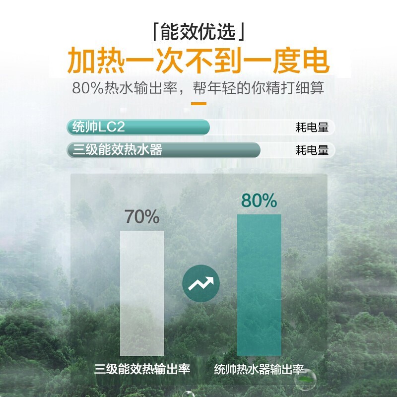 统帅 LES40H-LC2(E) 电热水器,40升储水容量,双重安全防护,2200W速热,比2000W热水器加热效率更高更快,拒绝漫长等待,即刻洗去夏日暑气。新一代钼金加热管耐腐蚀性提升4倍,加热性能更稳定。80℃高温抑菌,水质亲肤健康。